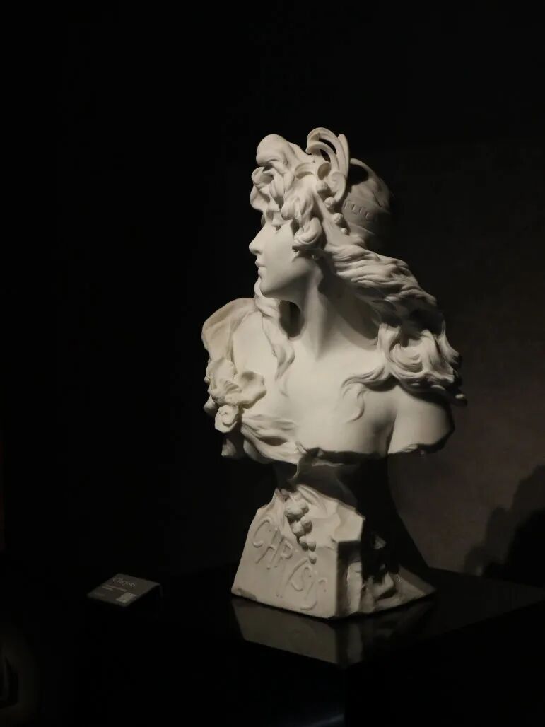 在入口的拐角处,是一座极为优质的卡拉拉白色大理石雕塑,色泽温润如美玉。波浪般卷曲的秀发,精致的面庞,充满活力的线条,勾勒出少女般的活力与美感。