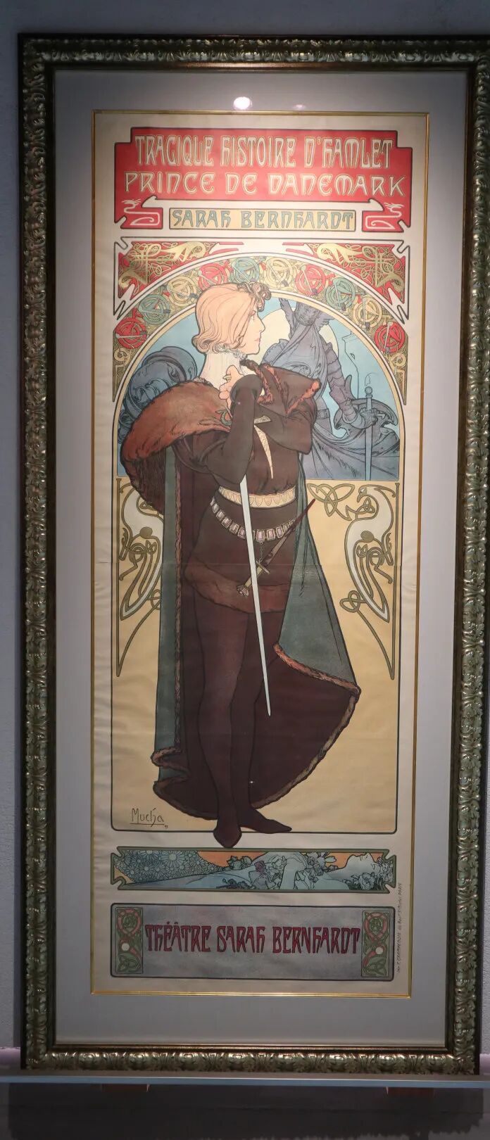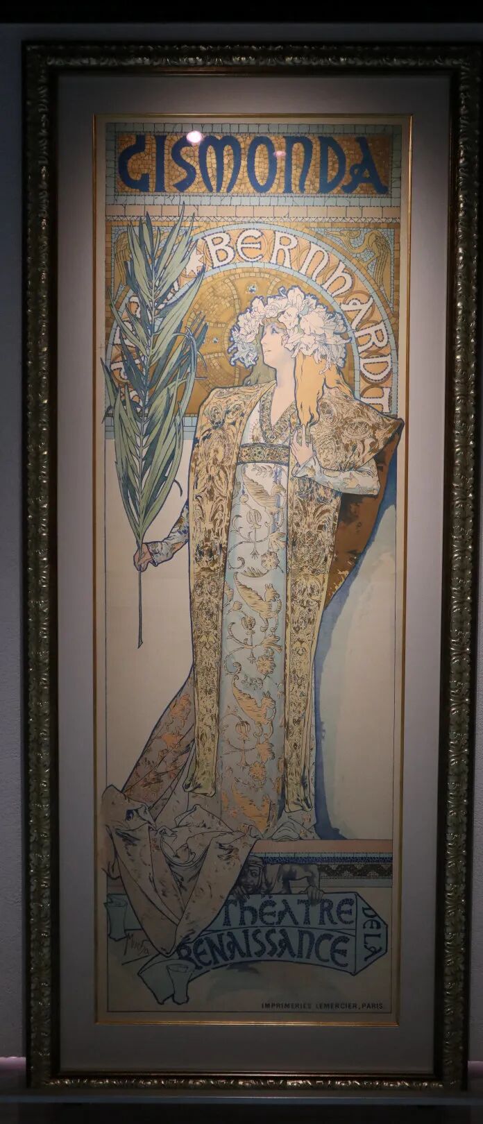 这是穆夏为戏院创作的戏剧宣传海报系列作品,从左至右依次为《哈姆雷特》(Hamlet, 1899)、《茶花女》(La Dame aux Camille, 1896)、《吉斯蒙达》(Gismonda, 1894)。尤其是《吉斯蒙达》,是其艺术生涯中里程碑式的作品。