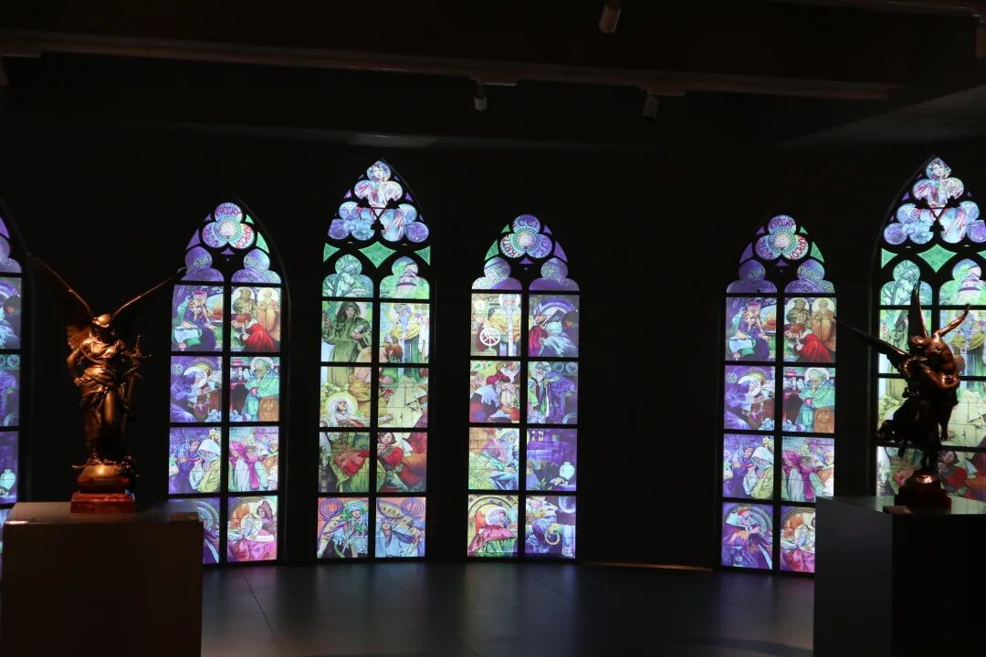 馆内以穆夏的创作时间为脉络,共打造了6大展区——歌剧厅、教堂厅、古董收藏厅、长廊、放映厅和繁花·商店。陈列了180余幅穆夏各个时期、各个领域的经典作品。据介绍,馆内的作品还在不断更新。