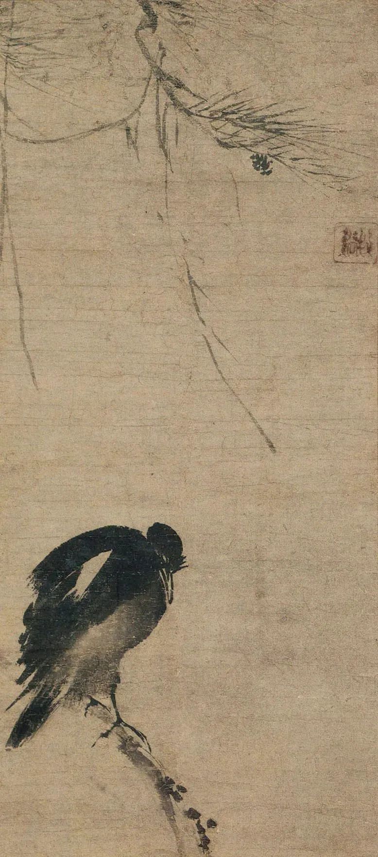 牧溪 老松八哥图