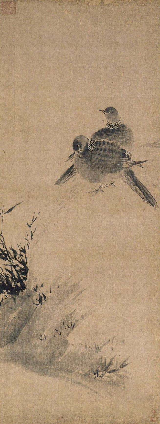 牧溪 竹鸠图