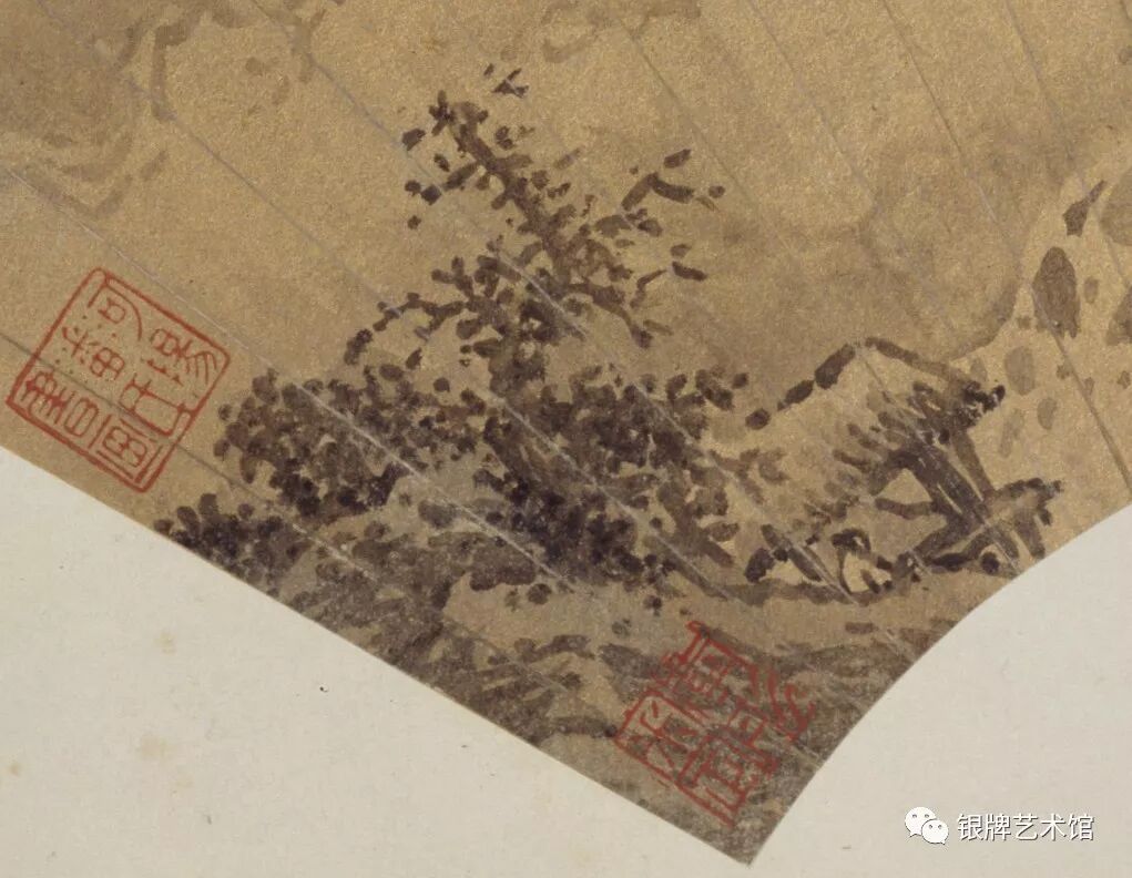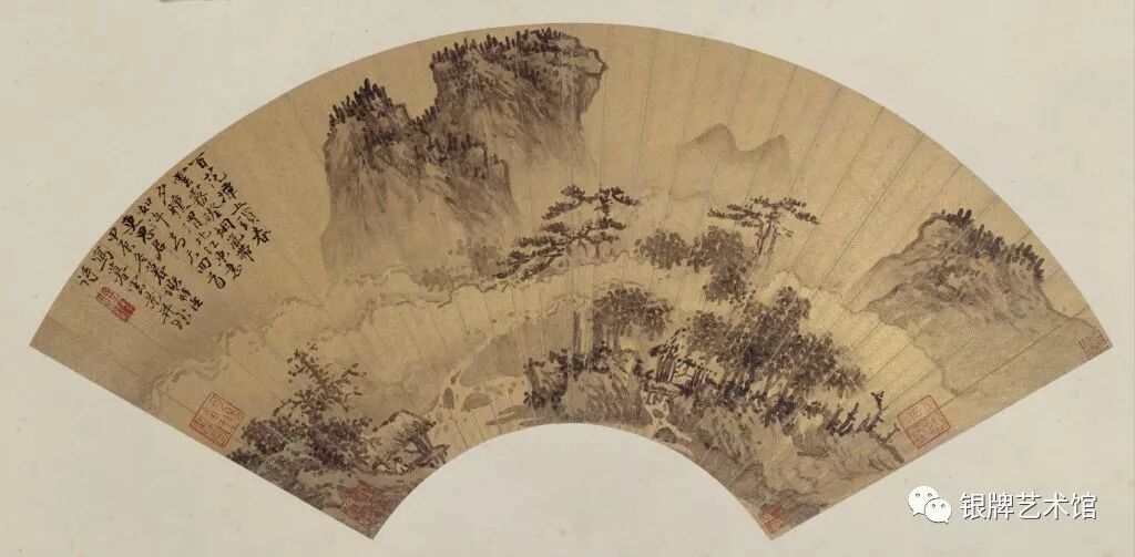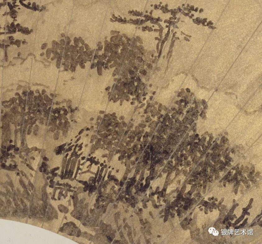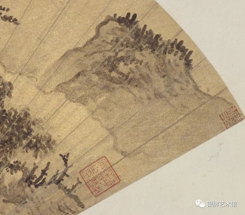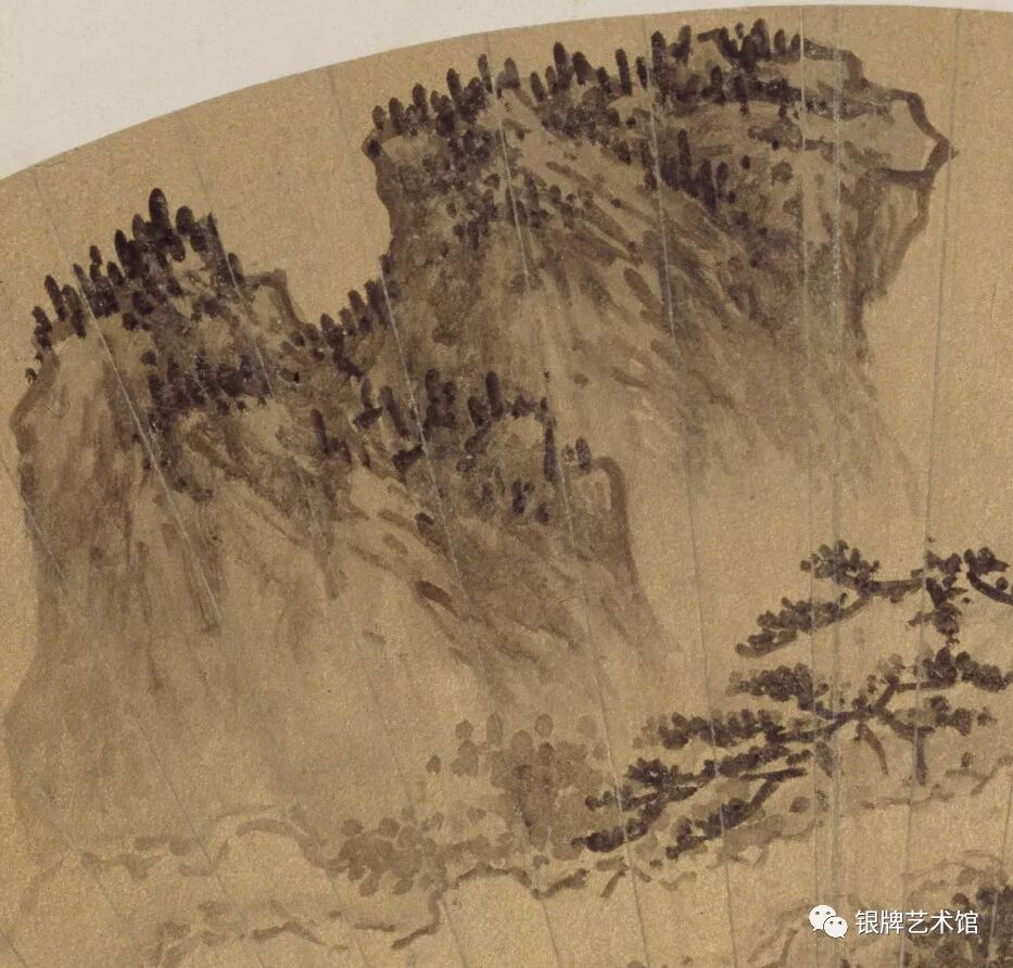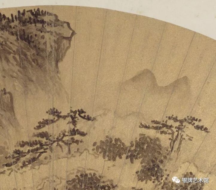 从右向左横贯画扇中部的云雾以其空灵、多变既增加了画面的高远感,又增加了深远感,同时盘活了整个画面的气韵,使之具有行云流水般的生气。