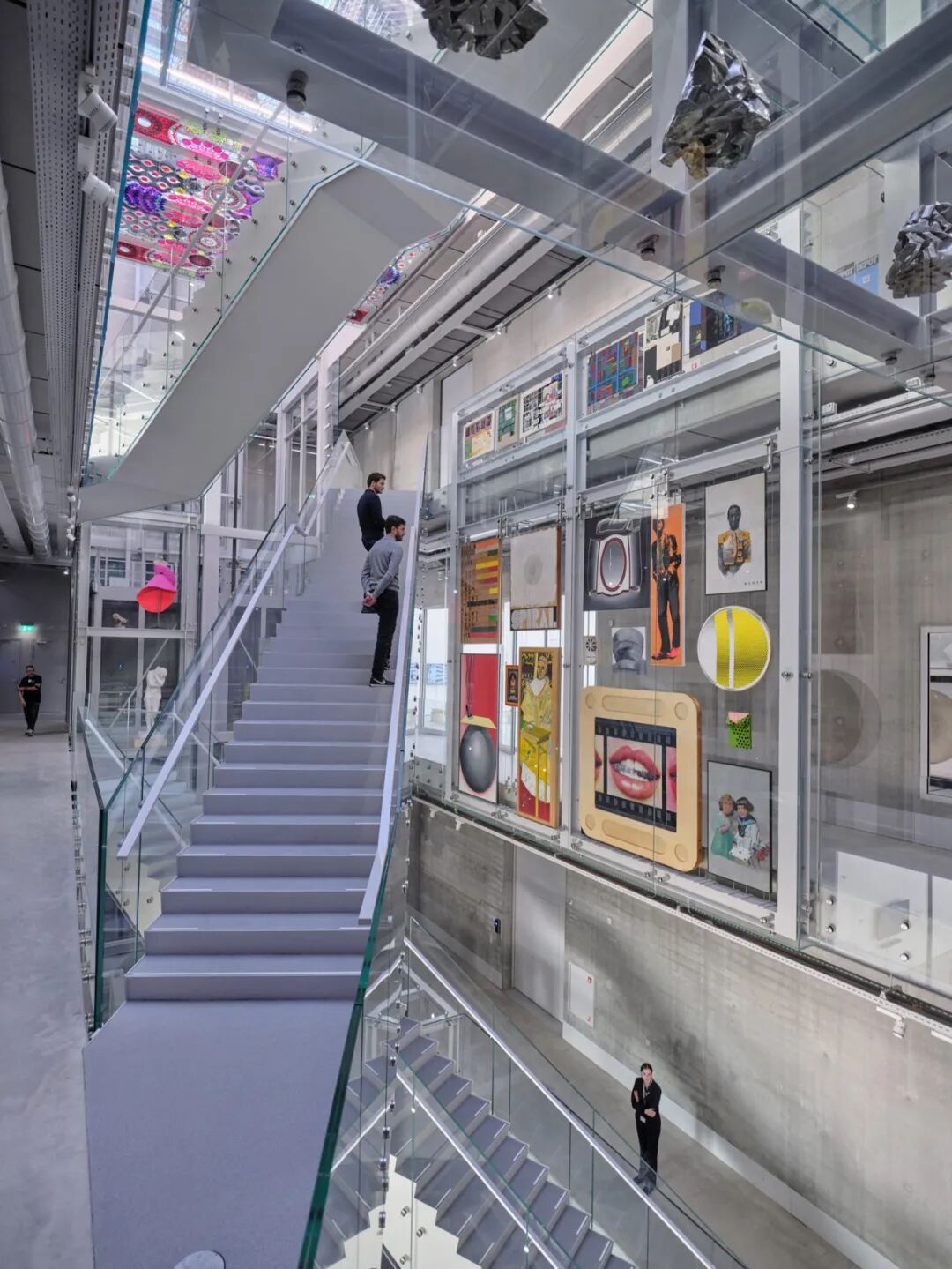 这些展示柜有的排列在中庭四周,有的连接成供参观者行走的桥梁。其内均存放博物馆藏品,为参观者带来别样的艺术体验。