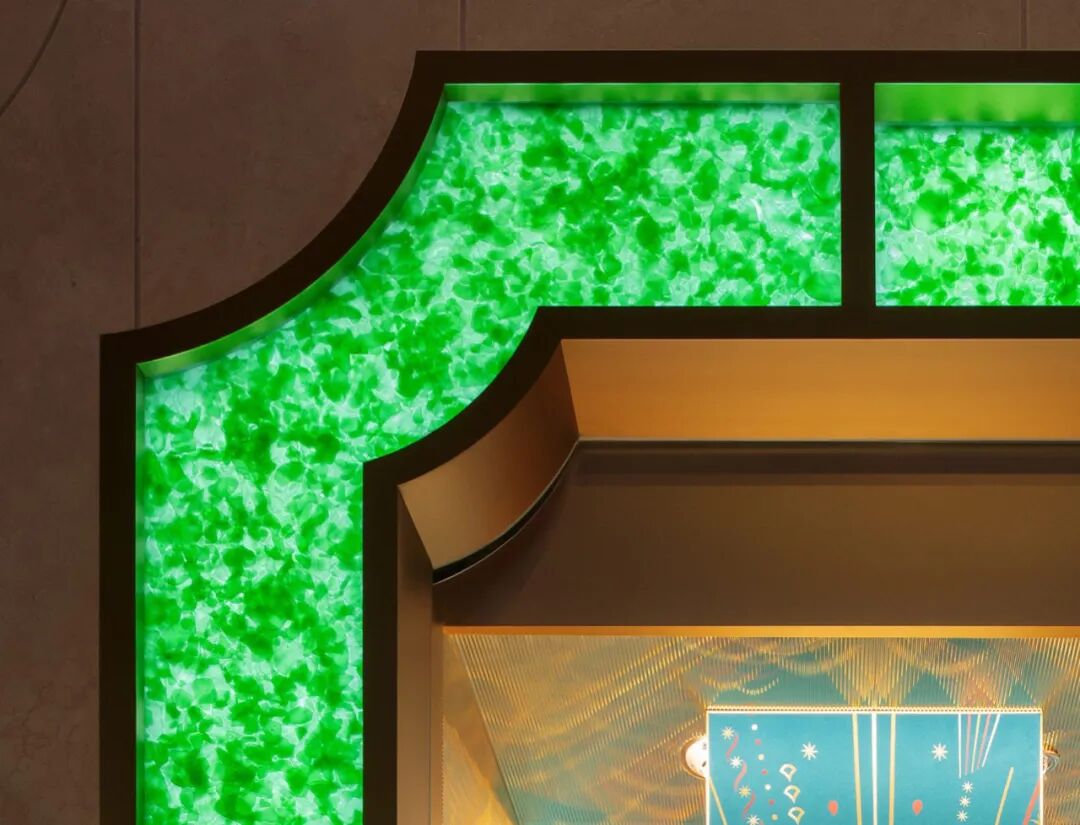 MVRDV 用回收酒瓶渣为宝格丽门店打造翡翠色立面