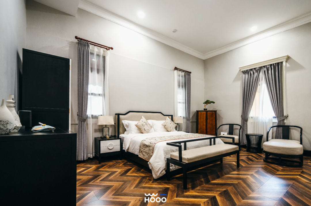 吴家花园将内部改造成了民宿,一楼是会客or闲谈的休息区,设中式茶室、下午茶风格小包房,二三楼则是8间风格迥异的客房。