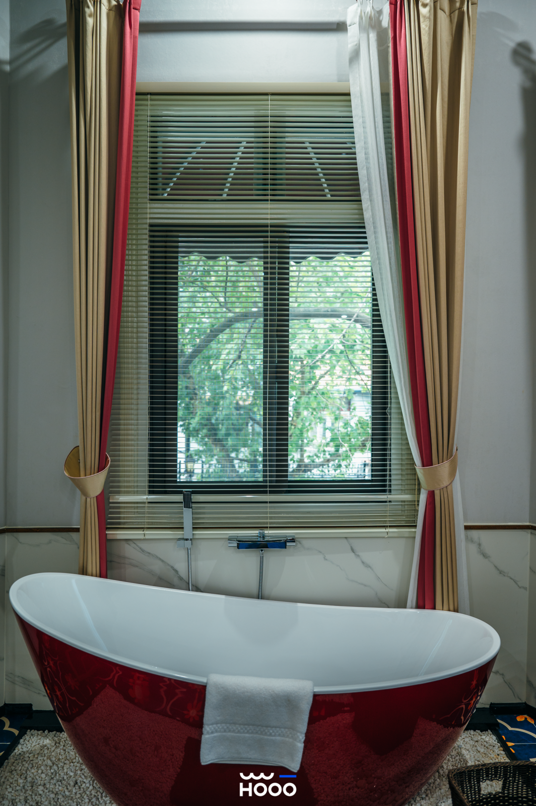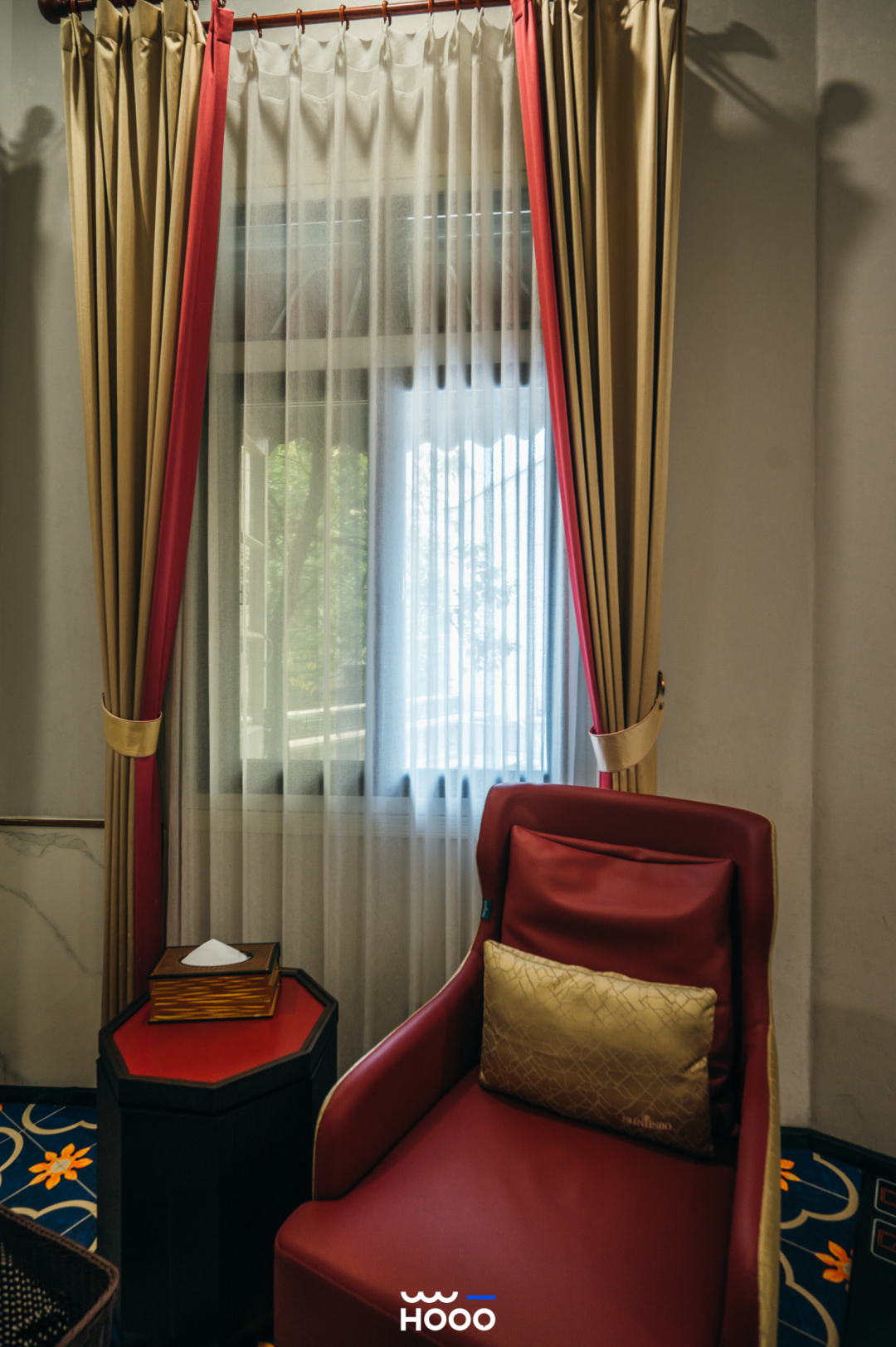 这是以林徽因《人间四月天》里的“爱,暖,希望”为灵感,房间的红绿主色热烈而浪漫。