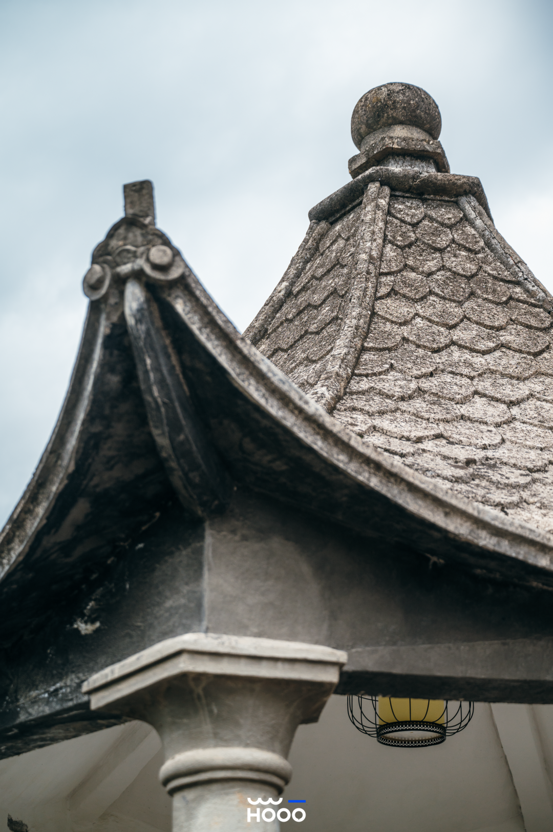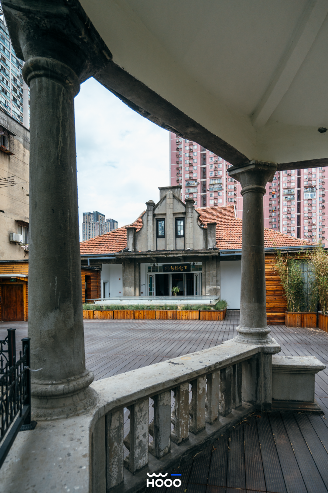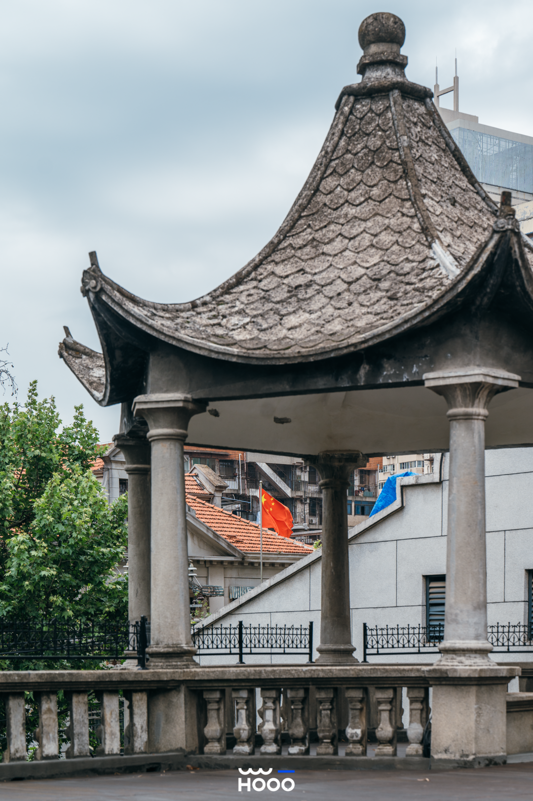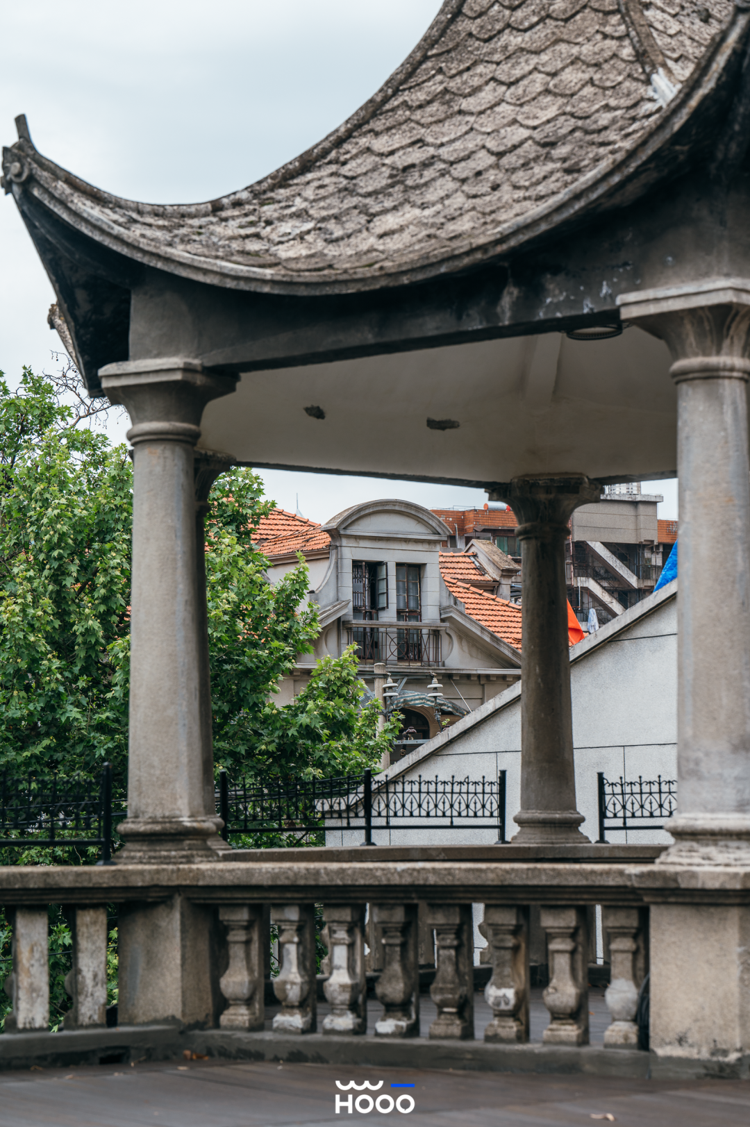 楼顶的露台如百年前一样,保留着最原始的西式教堂风屋顶和中式凉亭。