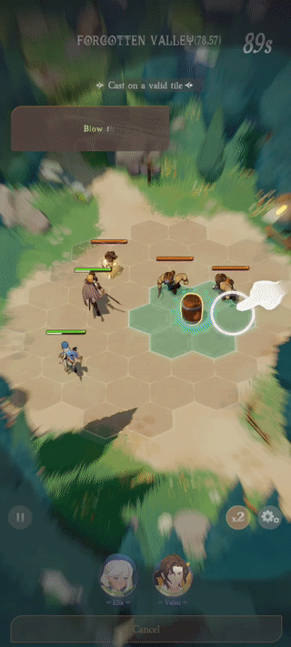 而到了具体执行环节,玩家还需要考虑战斗场景中的地形和机关的位置:障碍物会影响角色的走位和技能释放;机关则可以用来更轻松的击败敌人,比如说炸药桶、弩箭。