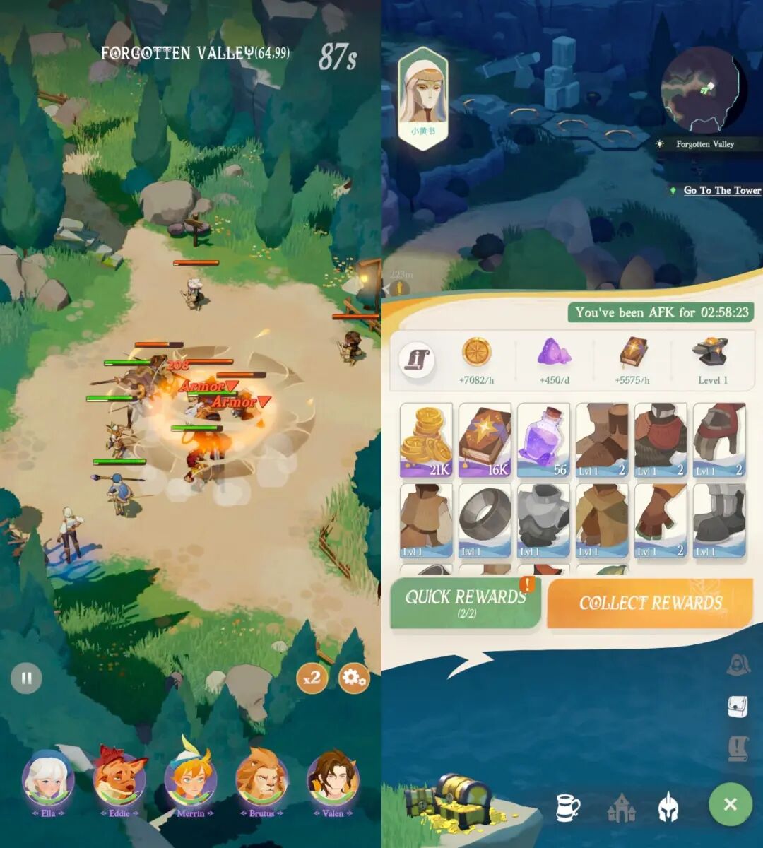 如果只是看世界地图,真的很难把这个产品和AFK那样的放置卡牌联系起来。而核心战斗部分,也透露着一股熟悉又陌生的味道。