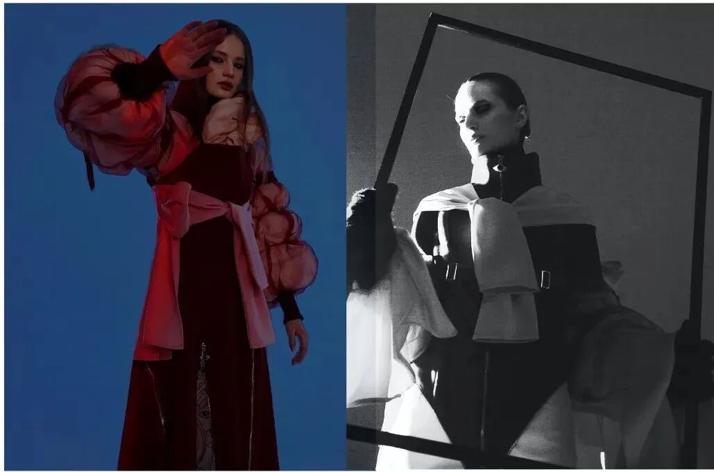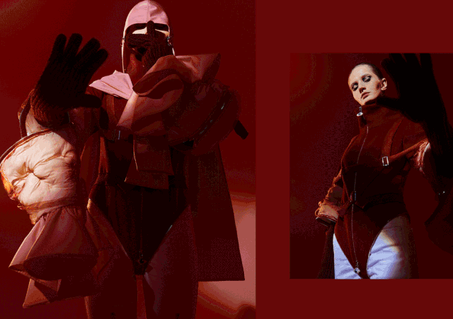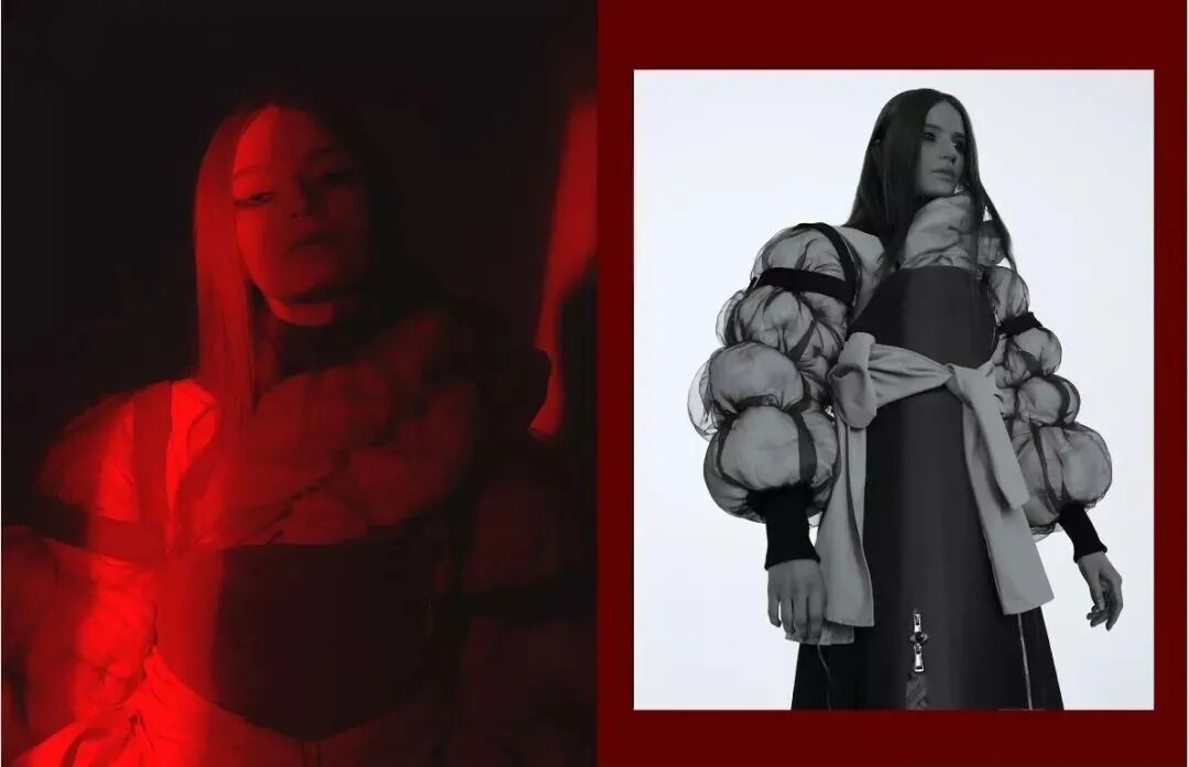 我还想要塑造一种对比,就是“松与紧”的对比,紧身衣最典型的用途是限制人或保护可能对自己造成伤害的人,但是我对此进行了解构,例如长袖外套的形状超越了佩戴者手指的尖端。超大的袖子和领子可以表达保护。面料改造是连接结构覆盖衣服的正面和背面,这也是伦时面试官很喜欢这个系列的一个地方。