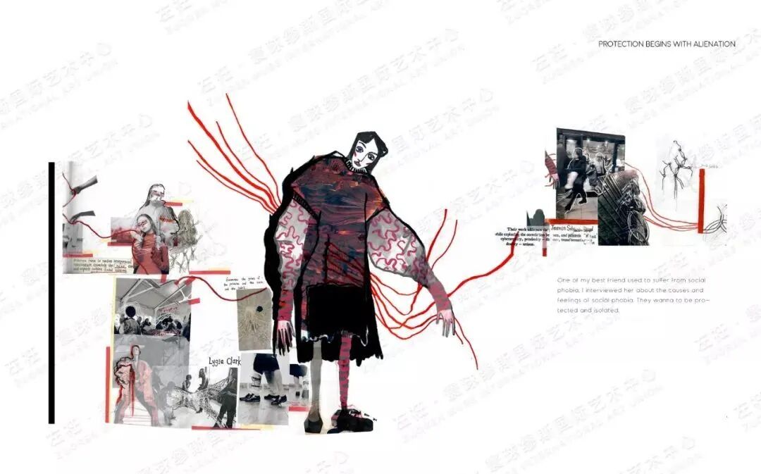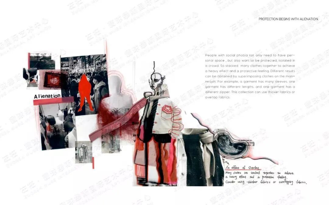 我觉得我的作品当中最大的优势在于我的作品有着独特的视角,设计过程中运用一些特殊的方法,成衣当中也尽量尝试新的材料与工艺,我也希望自己的作品集能够与众不同,最终征服面试官的点吧。