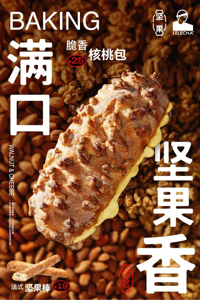 乐乐茶上新两款新品,法式坚果棒&脆香核桃包,两种烘焙方式,满口的坚果香,层次丰富,香而不腻 。