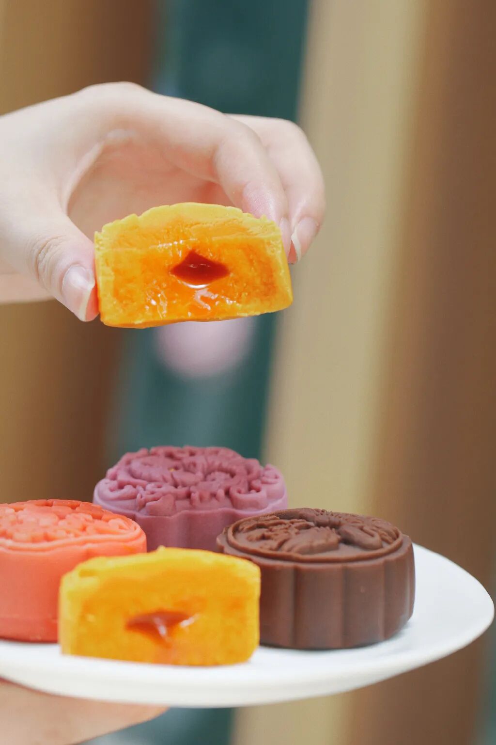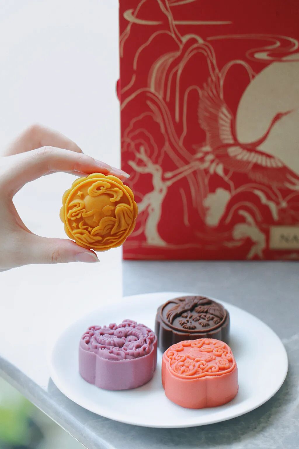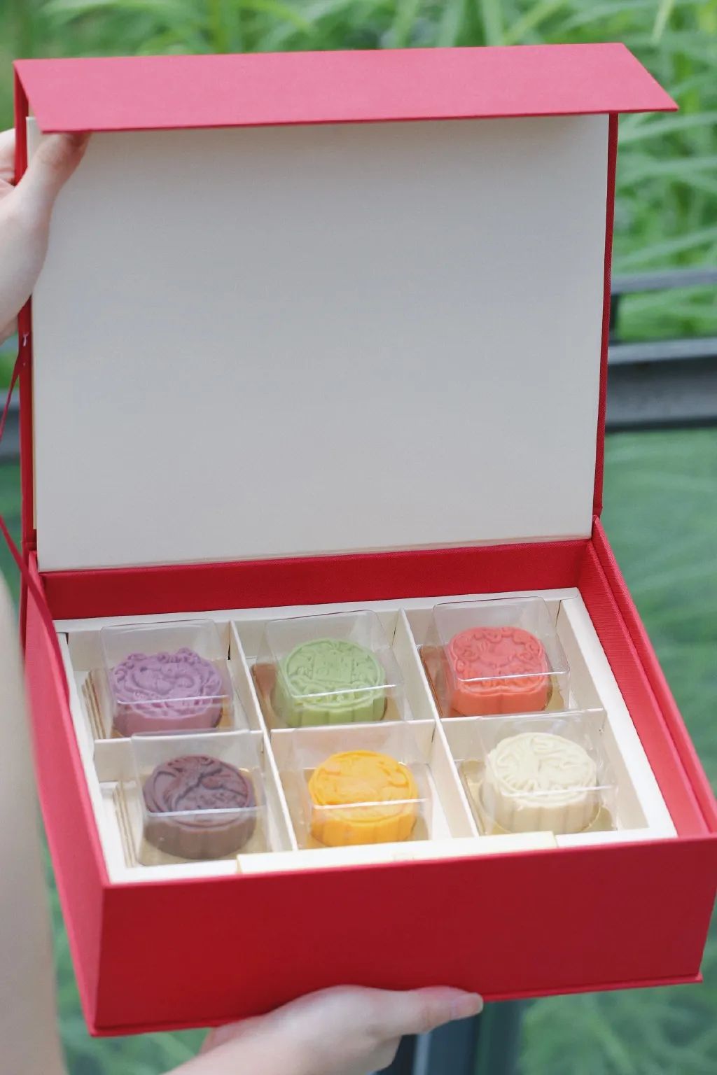 内含芋泥奶黄流心、桂花乌龙茶流心、巧克力流心经典奶黄流心、奈雪茉莉以及椰香椰丝口味月饼,六色六花,实力“流心”!