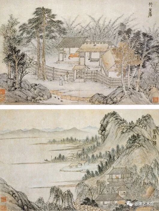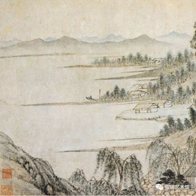 此图笔墨以皴染缜密松秀、墨色滋润蕴藉见长,设色多用赭石、花青和浅青绿等淡彩,使画面显得清新明丽。