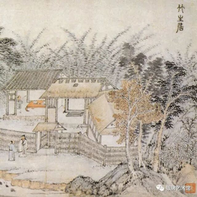 此图册为杜琼依据陶宗仪自撰的《南别墅十景咏》而谱写的十幅插图,每图之上有篆书题名,分别为:竹主居、蕉园、来青轩、开扬楼、拂镜亭、罗姑洞、蓼花庵、鹤台、渔隐等。