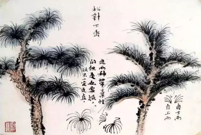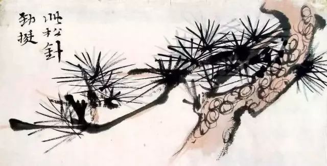 这是枝干,用粗壮的重笔,松针纤细劲挺,以见轻重变化,免于平板。