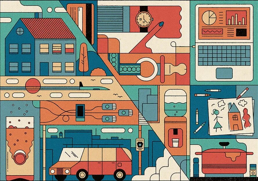 MUTI的线条插画是符号的集合,各种元素通过简洁的线条清晰的表达了主题。