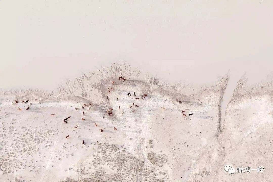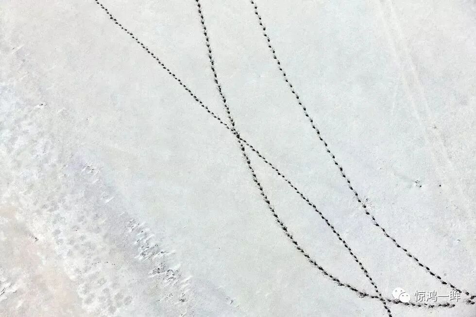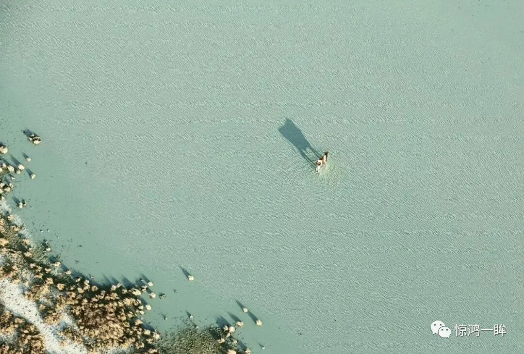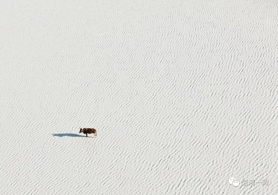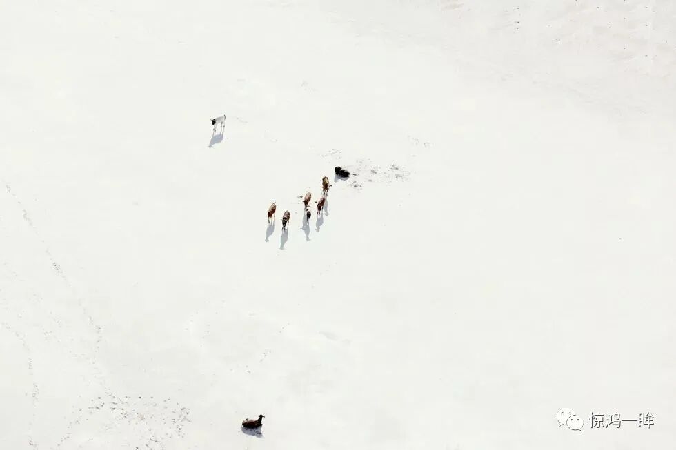如火烈鸟、好望角大羚羊、甚至是一只在蔚蓝的海水中休息的乌龟。动物们行进时留下的痕迹和阴影都是他作品中重要的组成元素。