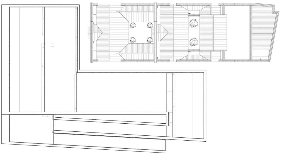 内部流线主要服务于展品参观。参观者从主入口进入后,会被建筑的倾斜体量所形成的下行屋面所引导,搭乘扶手电梯缓缓去往地下一层展厅。此时,参观者的心情会逐渐变得平静,可以在光线柔和的地下展厅中仔细研读城墙的历史资料,并在想象中勾勒出城墙的模糊轮廓,开始有了初步的概念。而后,参观者通过扶梯直达二层展厅,在观赏二层展品的同时,还可透过夹丝玻璃看到外部城墙的朦胧影像。这时城墙的形象在参观者的脑海中慢慢变得清晰,人们心中也对城墙真容多了一分期待。结束室内展品的参观后,参观者会走出一扇门,到达外部流线的起点。