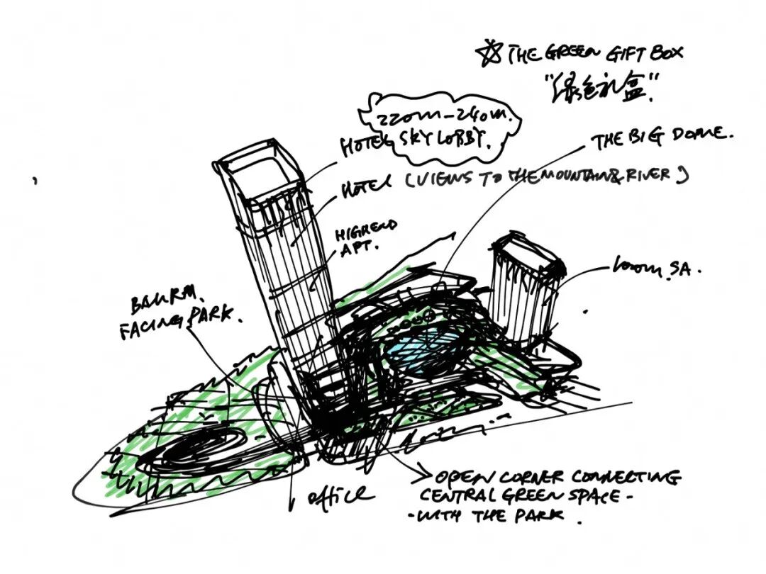 【关键词】:城市公共开放空间、复合型商业综合体、超甲级办公楼、景观瀑布、空中玻璃栈道