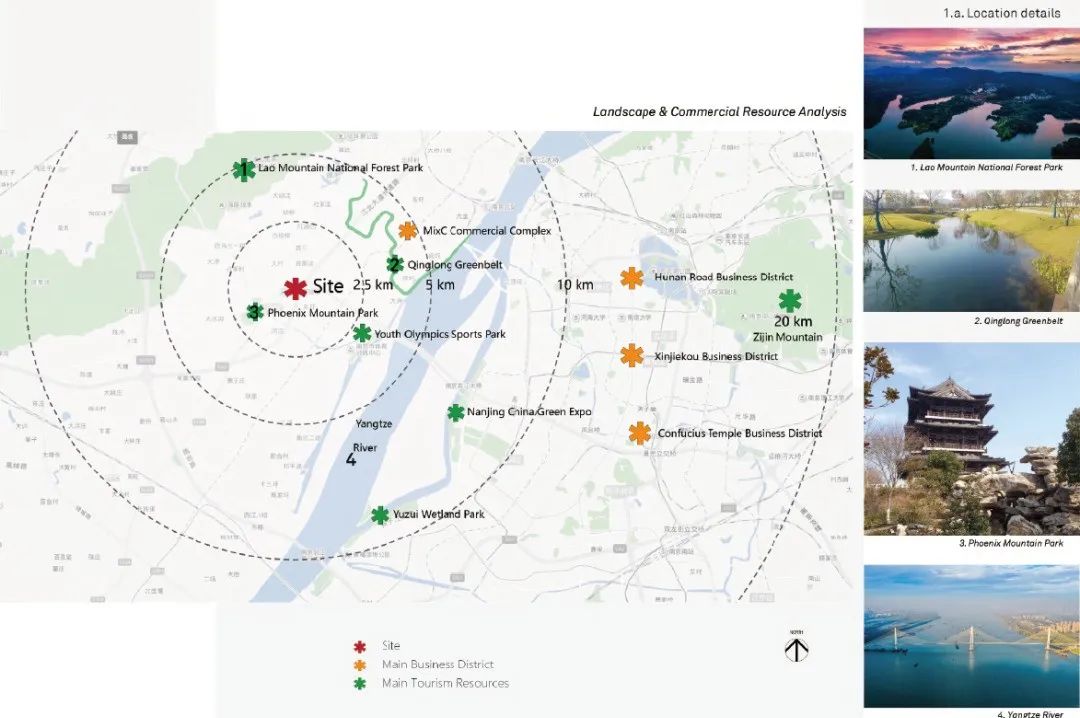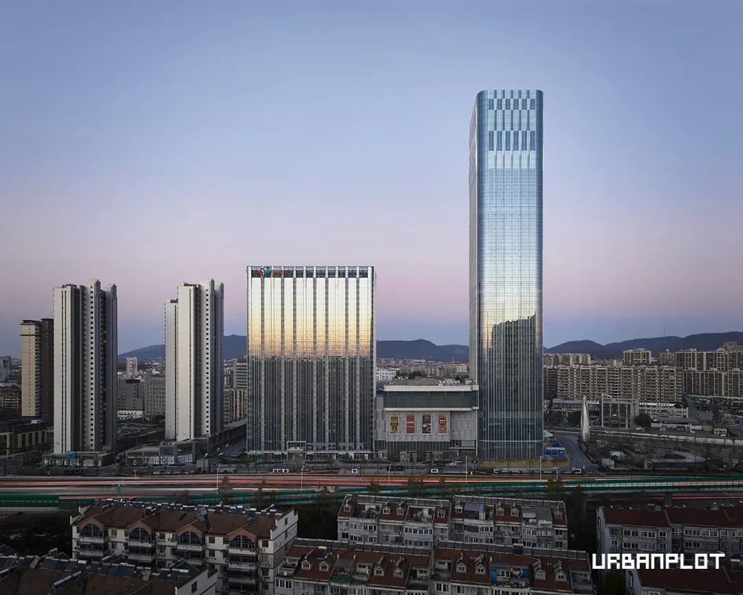 项目坐落于江北新区,其设计希望能把古都南京的历史名城底蕴带到城市新区。建筑造型以“南京印象”为设计概念,运用了南京本地的明城墙、聚宝盆、龙吐水等建筑元素来打造商业空间,塔楼幕墙和塔冠运用了当代草圣林散之(浦口人)的枯笔书法笔意来设计,是有识别感的标志性形象。凯悦酒店空中大堂放置在酒店高区,向北看江北新区核心区,向西看老山,向东看长江,尽享城市美景。