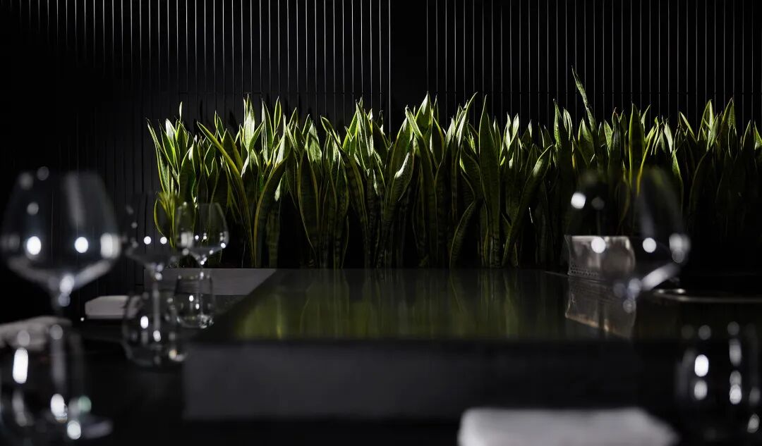 若以开放、通透为需求强调整体,虎皮兰绿植则可形成一定的视线遮挡,让宾客落座之际也兼顾私密度。当就餐区各自独立时,两个窗口又可与室外建构微妙的联结,并延用格栅漏景,贴合东方人的审美情绪。