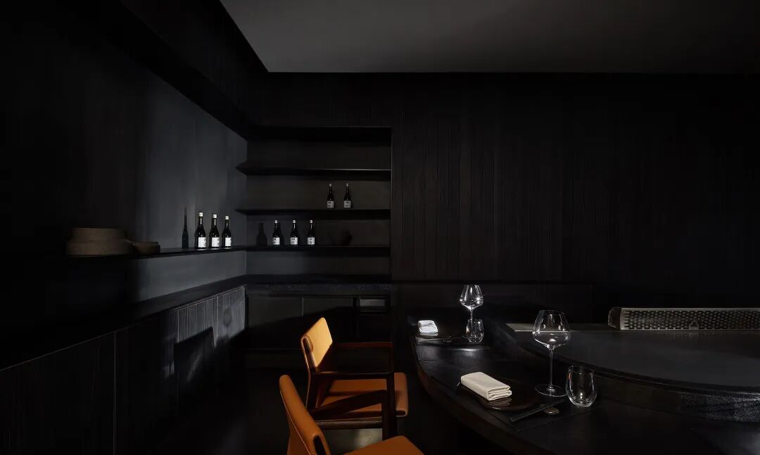 包间被碳烤木铺展,质朴的木作以返璞归真的面貌,促成丰富的内涵。墙体下方用细节成就惊喜,安插一块玻璃,让包间与开放就餐区无形中增强联系,也提升了室内的呼吸性与氛围感。