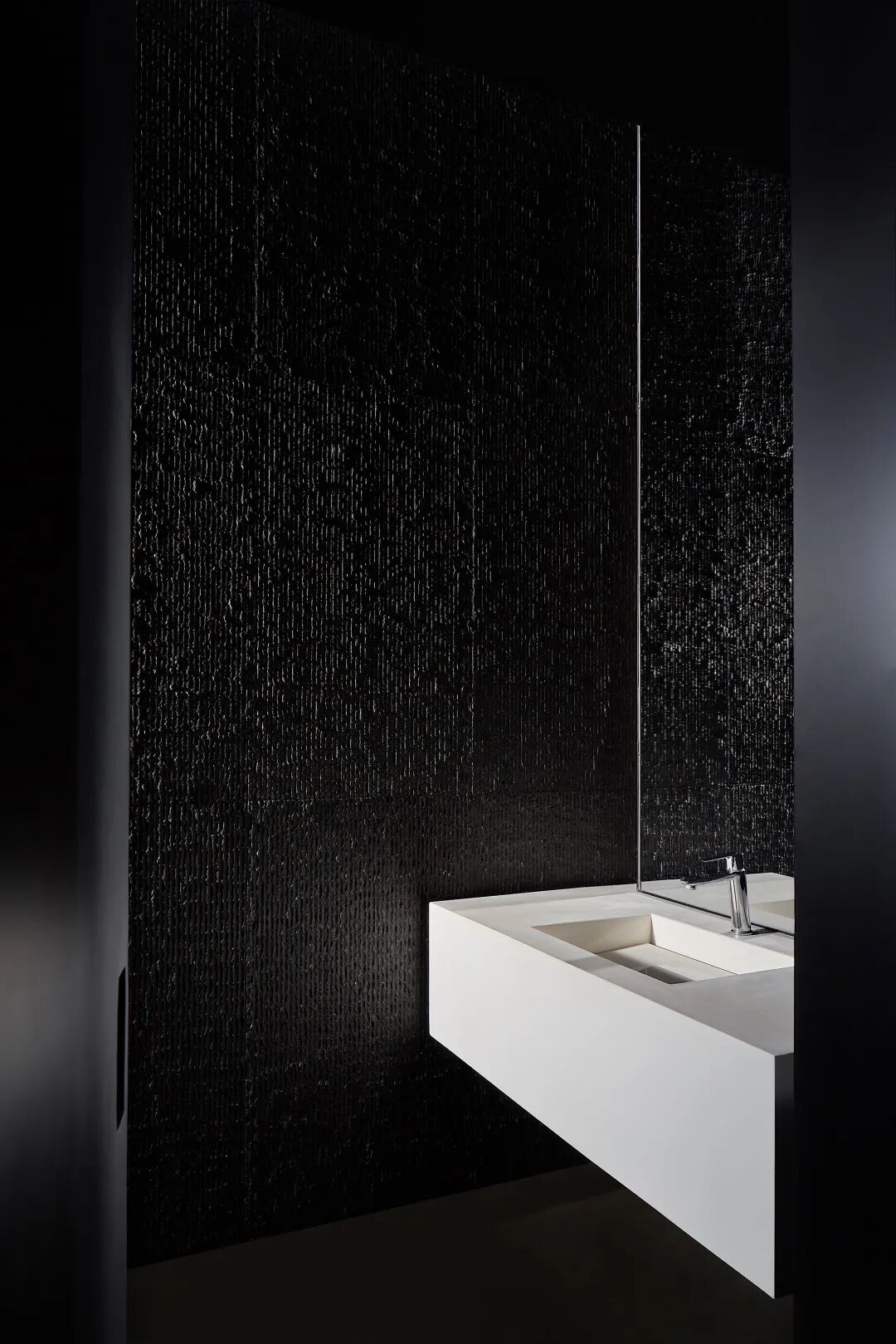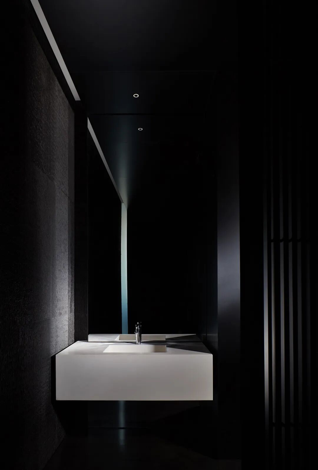 卫生间遵循着材料、比例与秩序,利落从简。粗粝的肌理与光滑的表面,配合光线映衬,强化其质感,也进一步凸显层次。设计师方磊补充道:“我们希望在南京龍·铁板烧餐厅,以创意设计赋能商业。强调就餐环境为载体,美食需求为主体,配合空间本身、灯光调试、餐台设备、座椅及餐具选配,甚至软装陈设等,温暖慰藉宾客的身心。最终透过这个场域,诠释出对内在的探索,润物无声。”