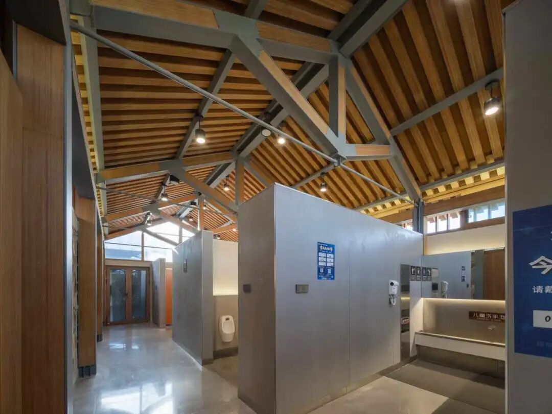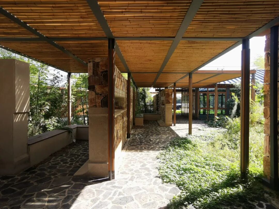 Bamboo forests and canals are the most significant and common features of the site, especially the canals. Due to the need for flood control, the walls on both sides are made of high rough stone retaining walls, moss and water stains on the rough stones, and the furrows seem to be a secret place under the shadow of plants. Since the drainage canal is converted into an underground bypass in the main entrance square, its presence is almost imperceptible. But there are two impressive places on this humble site: one is the management office across the flood channel, which is a straightforward and vivid attempt to break through the limitations of the site and achieve the construction of crossing the canal; The other is the employee's e-bike shed, which consists of steel columns, truss arches, and wooden purlins and rafters in a simple and clear structure, which complements the forest passing through the surrounding area. These two artificial traces reveal a revelation: nature is a landscape because it interacts with people in the venue.