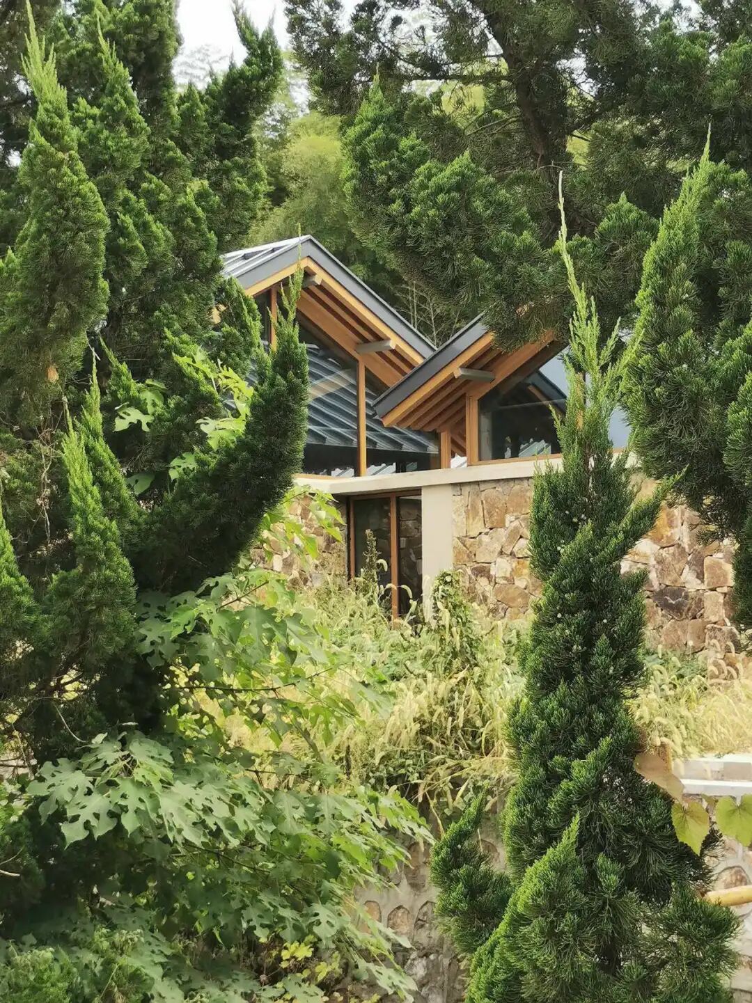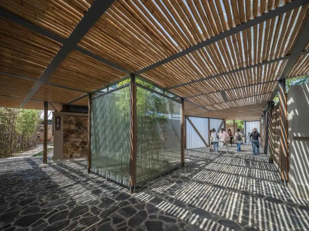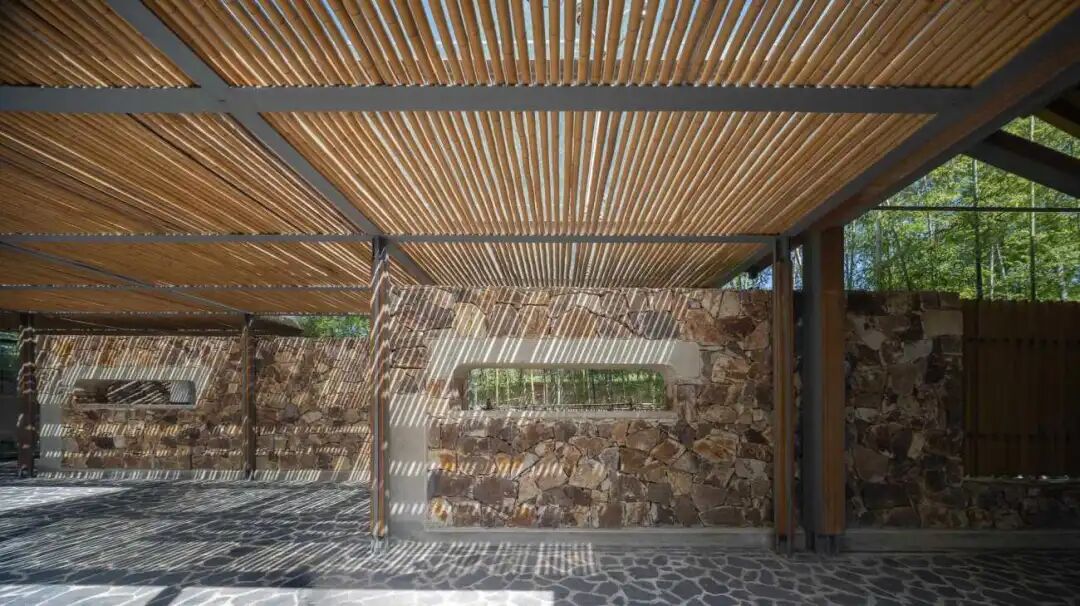 △ 屋架与外墙脱离的方式让光线和竹林透进了室内The way the roof is separated from the exterior wall allows light and bamboo forests to penetrate the interior