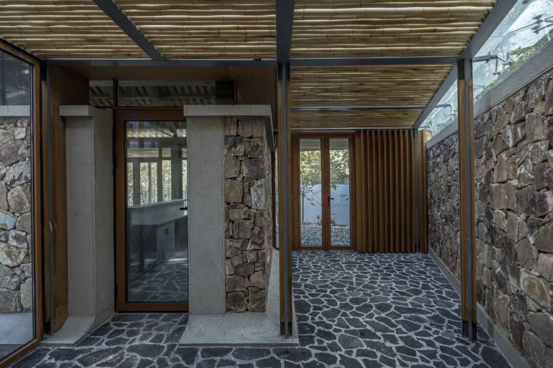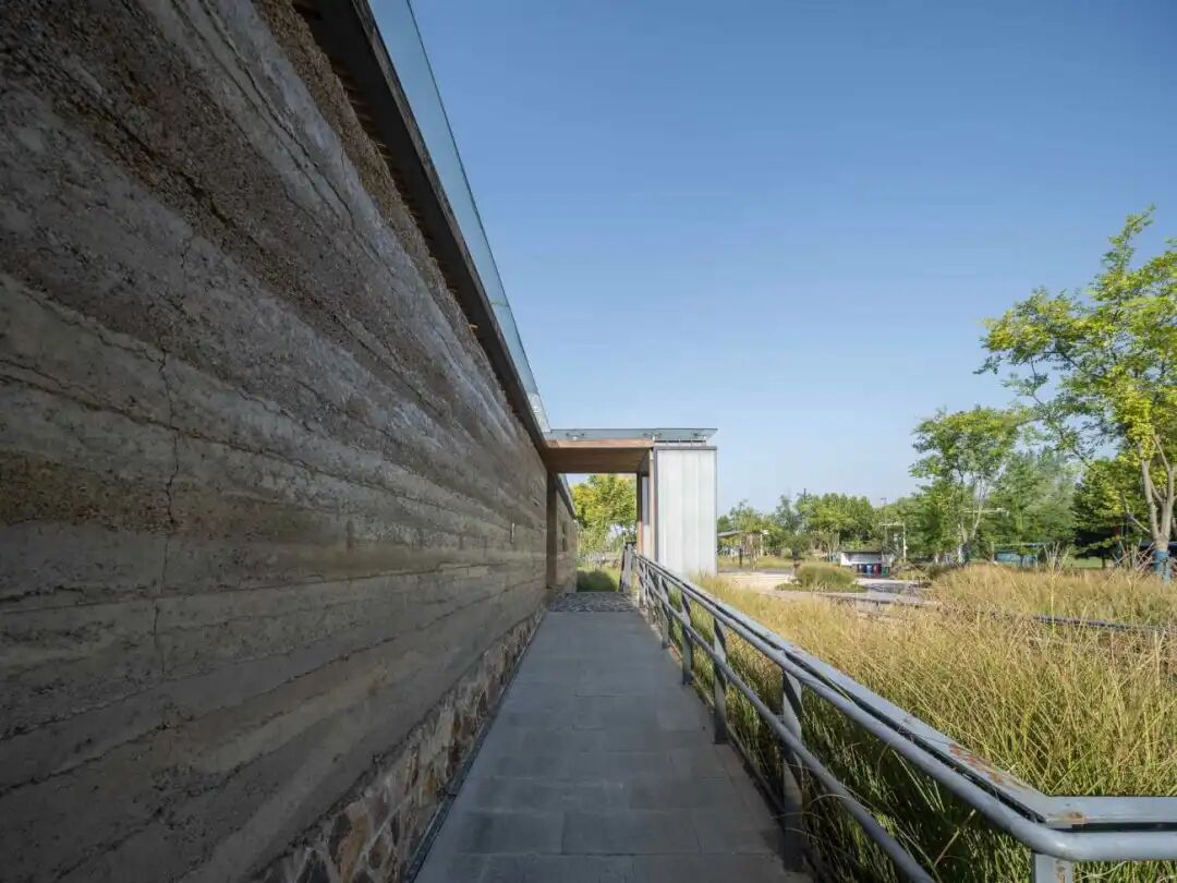 △ 夯土墙、毛石墙和U玻璃墙Rammed earth wall, rubble wall and U-glass wall