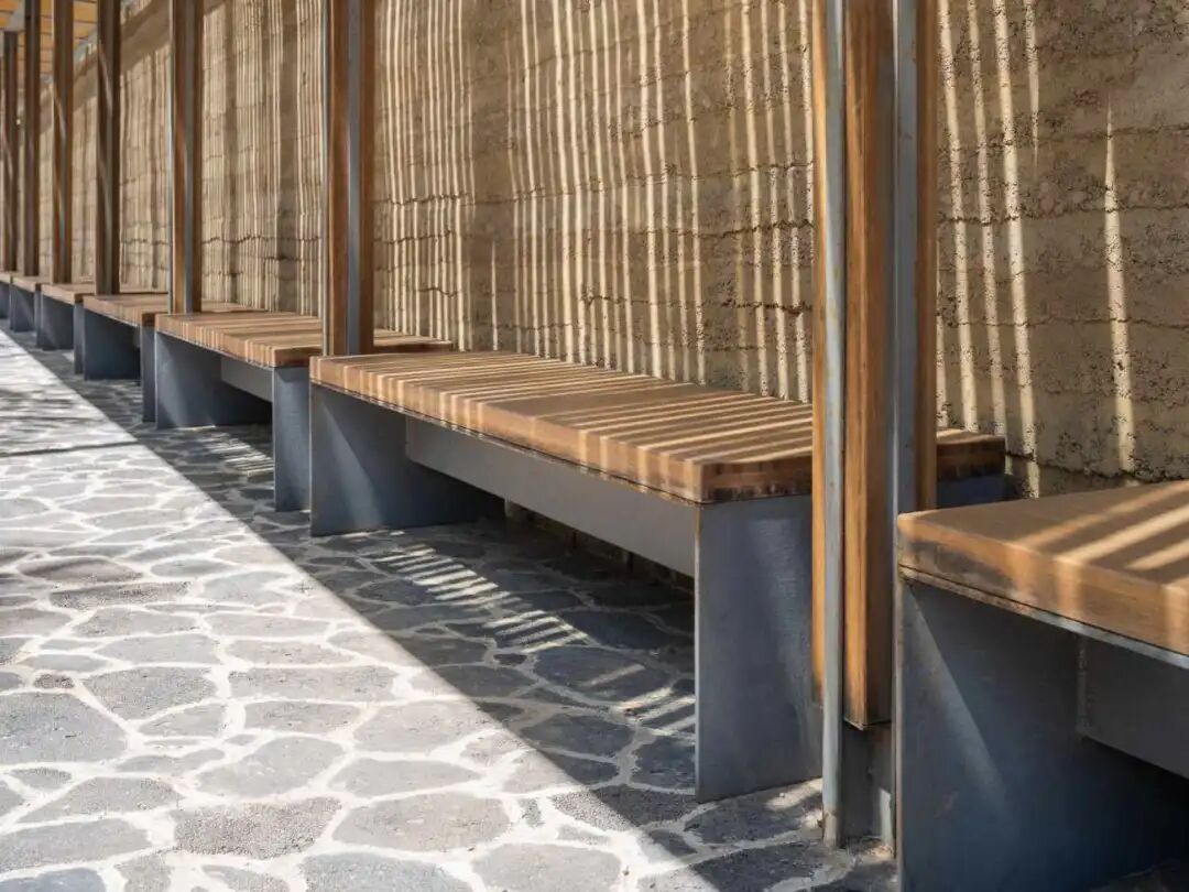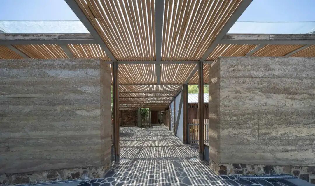△ 夯土墙上的入口Entrance to rammed earth wall
