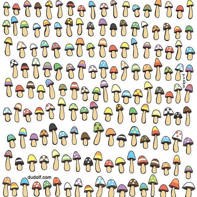 8、哪一颗蘑菇的帽子最特别?