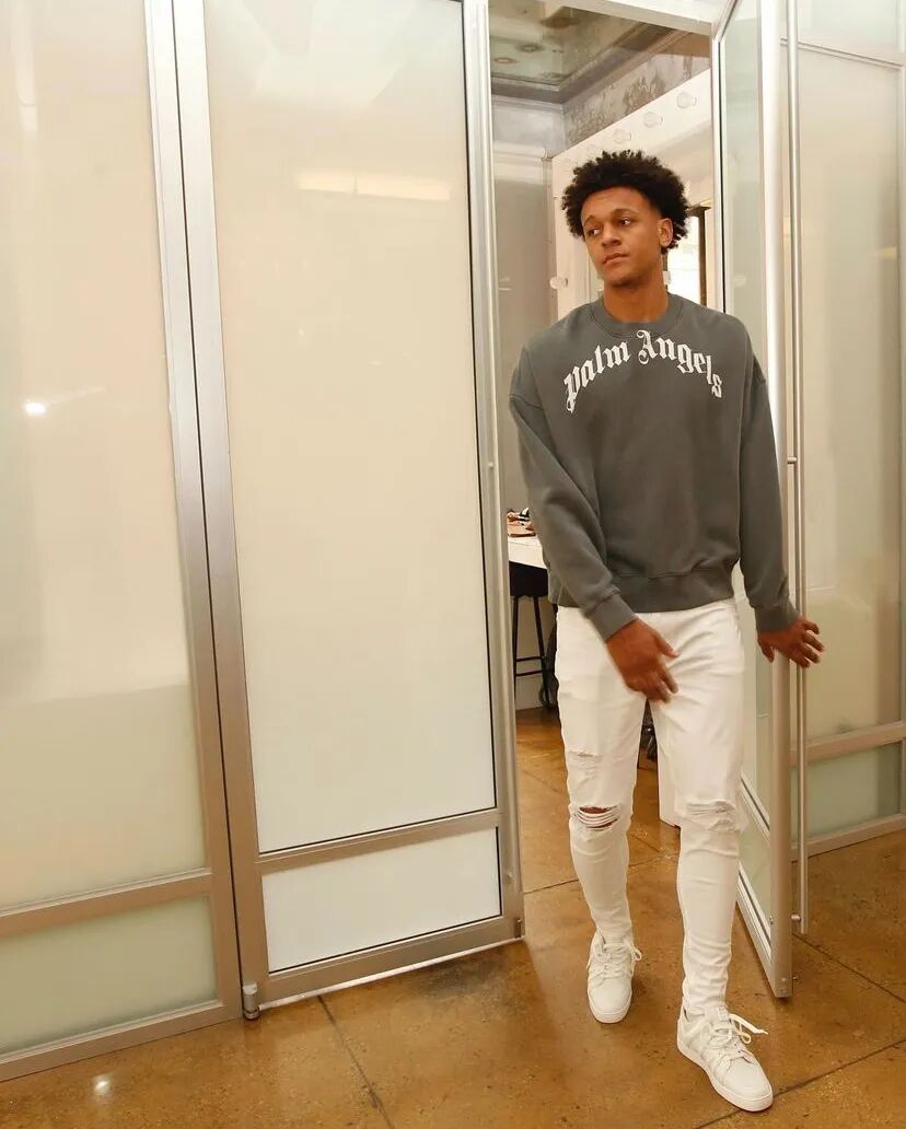 虽然是一名内线球员,但小贾的身型并不臃肿,一副标准的倒三角身材让他在穿搭方面能够轻松写意。