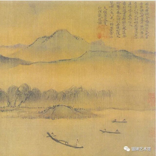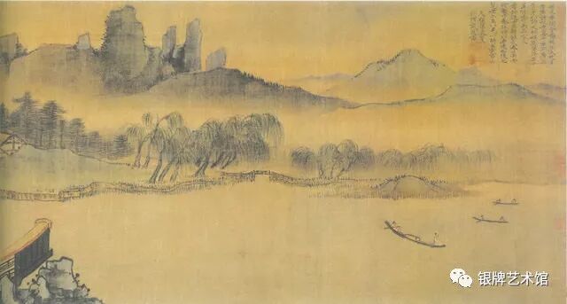 《南屏雅集图》是描写元末名士杨维桢春日携友携妓游西湖,在南屏山下莫景行山庄中宴饮酬唱时的情景,作于天顺四年,是戴进晚年的代表作。