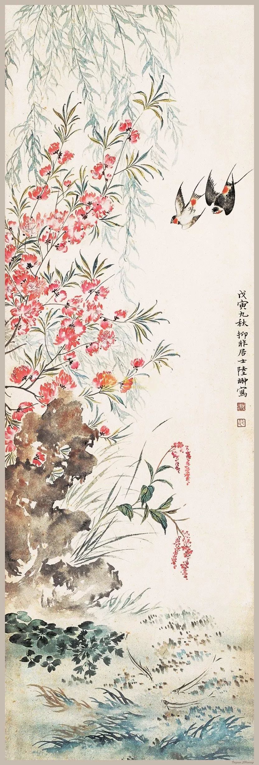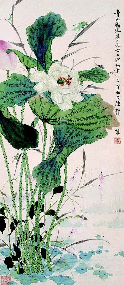 他早年在故里从师李西山,遍习清末画家张子祥、沙山春、任伯年;继师陈迦庵,临陆廉夫;25岁又从吴湖帆学山水、花鸟;还曾与黄宾虹、张大千为邻,常受启示。