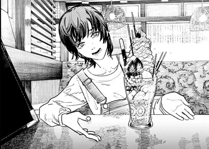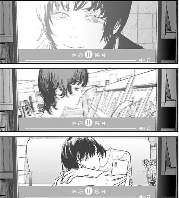 又或者《电锯人》中,坏女人玛奇玛无情杀戮,毫无情感可言,却在看电影时为“人类之爱”而感动到流泪,以此产生一种强烈的对比。