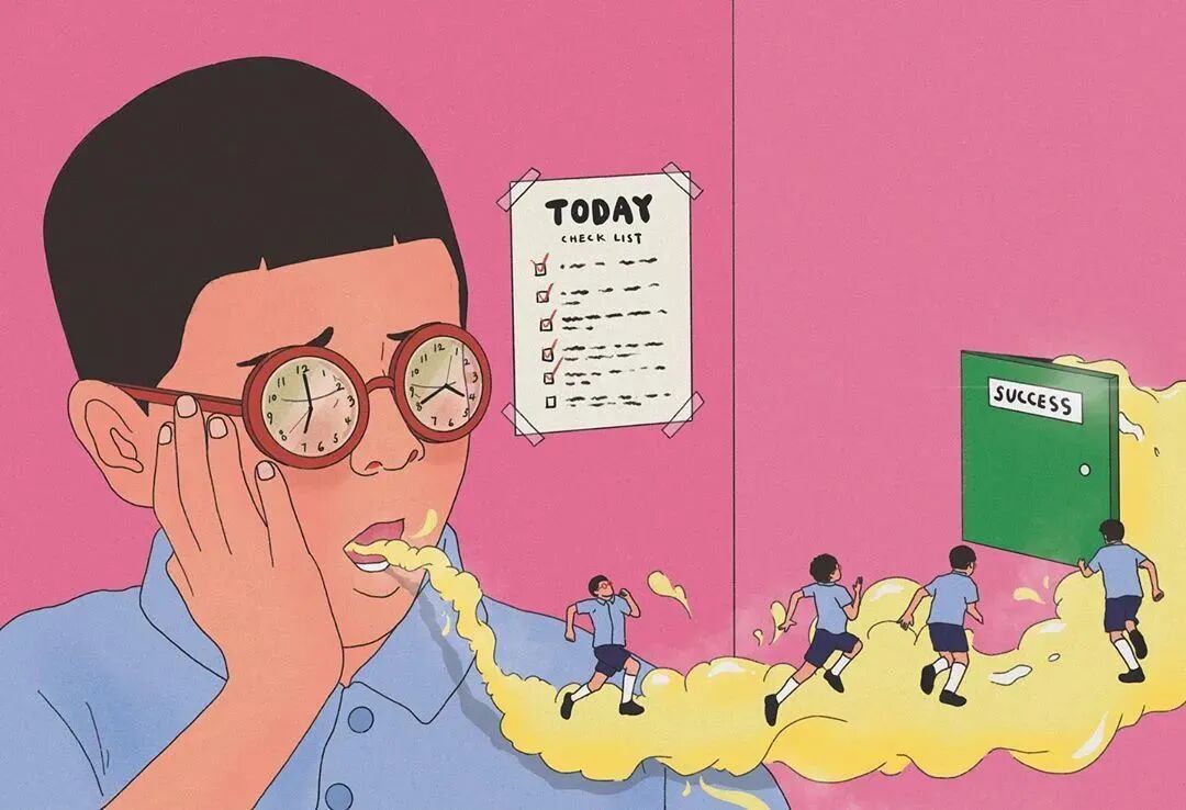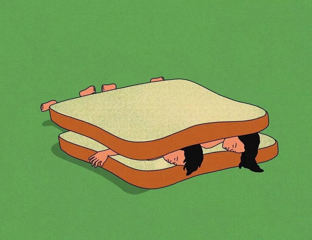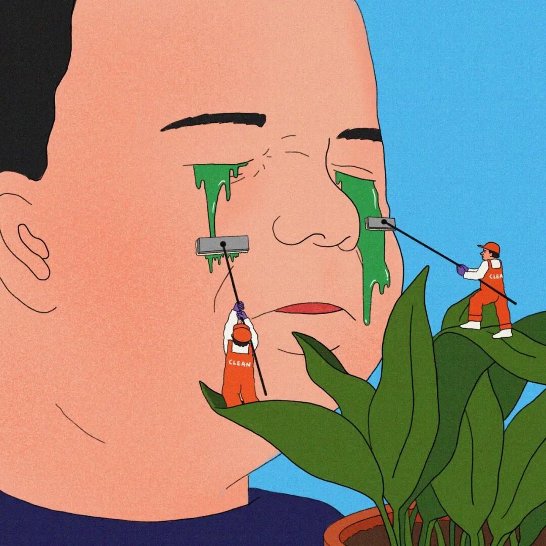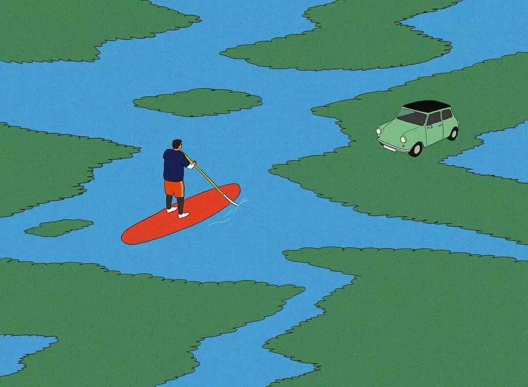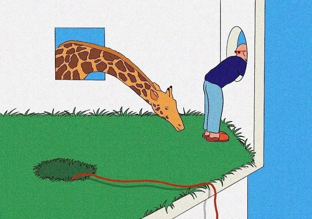 作品集2023-12-25 脑洞、讽刺、白日梦,全亚洲的社畜,都想跑到她的画里撒野 | 金城 近年来,无论是互联网还是现实,很多人都感受到了一股焦虑感。失业、内卷、内耗等状态令许多人疲惫。 什么时候能够从容一点,有趣一点? 学学韩国插画师Choi haeryung的画吧,用孩子气的天真,对抗无聊的一切。 看她的画,我们的第一印象是画面简单而宁静。 比如,她的《失踪》系列构建了一个田园诗般的环境。 女孩失踪了,她不在任何的学校与班级,也不在文件堆积如山的工位上,而是跑到了... 世外桃源。 她的背后,沙丘、躺椅、椰子树被分割到各处草地上,她与它们若即若离,但仍专心致志地看着什么。 这个世外桃源还来了其他的人。 两个穿着校服的女生手牵手站着,一个人盯着另一个人的侧脸,另一个人则看着远去的纸船,似乎可以感知到两个女孩之间暧昧不清的情感…… 一个男人,他可能逃离日常繁琐的工作,带了渔具在草地上钓鱼。 还有另外一个人,他把轮滑板当成小筏,高尔夫球棒当成船桨,抛下自己的汽车驶向远方。 在这些画中,我们感受到了梦幻式的宁静: 河水静静流淌,纸船慢慢地移,鸽子好像在等船再靠近点,扑腾下翅膀准备搭个便车。 她的画好像就是如此意识流,让人感觉宁静忧伤,难怪业界人士评价她的画用了白日梦这个词。 这种白日梦,她是从小做到大的。 上学时,她就把时间花在构建各种各样的角色上。 然后,她会迫不及待地与朋友们分享。 那是学生时代的白日梦,惬意而轻松,它们从脑海里产生,再从笔尖流泻出来,构成一幅幅如梦似幻的画面: 带着潜水镜,和群雁遨游在碧蓝天空中。 把美神维纳斯当成换装模特,看看哪件衣服更好看? 肚子痛的时候,笔下也妙趣横生:肠子里面好像有个小人在捣乱... “我通常从互联网上获得灵感。如今,互联网已成为日常生活的一部分”,白日梦的来源原来是浩瀚的互联网海洋。 有了这些原材料还不够,还需要一点奇思妙想式的加工。 她说:“网上的灵感与想象混合,然后我创造了一个新的形象。” 吃的是草,挤的是奶。 网络上的繁杂信息成为了她白日梦的黑色燃料,催动着这天真机器不断加工、产出斑斓的幻想,让她的画充满了童趣,宁静,但也仍有因原料不纯而产生的淡淡哀伤。 哀伤的根源是什么? 可能从她带有讽刺意味的画作中可以窥探一二。 她喜欢用鲜艳的色彩、熟悉的日常场景,直到它们变成一幅充盈着讽刺的图景。 美国国旗上的星星,实际上是棒球组合而成。 数字货币把银行隔离成一座孤岛。 把新冠肺炎用一招本垒打,打到别的地方去。 窄窄的高架桥,底下房屋倒塌,汽车沉没,像垃圾场,存活的人们也似公车在走独木桥,岌岌可危。 纷杂的世界里,成年人为了金钱,埋头社交、工作。 然而,在脚步匆忙的众人中,却有一个孩子扬起了头与自己对视。 和孩子的对视,让自己也变成了孩子,而用孩子的眼光看世界,世界也变得单纯而多彩。 童趣也成了对抗枯燥世界的法宝。 比如,孩子们可以拿起放大镜观察周遭,把时间“浪费”在常人看来的微不足道中。 大人们的地中海是因为年龄的摧残,孩子能爬到头顶像插秧似的拯救一番。 读书太困了,就躺在书上睡大觉,让梦里的小人替自己解决。 文件太多,堆成一座高山,就干脆躺在上面睡觉吧。 脑海里也有分岔路,小孩子也有他的迷茫,该走向何方? 在彩色的世界里,以梦为马。 把脑子摘掉,做一场心灵的瑜伽。 在孩子的世界中,没有什么是不可能的。 肯德基爷爷能给麦当劳作宣传,咬了一口番茄,其实是苹果;不顾及身材,轻松实现薯片自由..... “我总是试图看到一个年轻孩子看到的每一个图像,尽管我不是一个小孩子了,但我认为我仍然有可能从孩子的视角出发。”她说。 她与自己有一套和解的方式,那就是用这小小的天真、无伤大雅的无赖,去对抗现实里大大的无奈。 有人说,看她的插画是一次宁静祥和的正念之旅,在精神紧张,寻求心灵安慰的时候,甚至有治疗的作用。 她的画,会让人想起小时候飞行的梦,梦到基调总是欢乐。 而长大后,成年人忙于都照着别人的模板生活——鸡娃,养娃,996、北漂广漂沪漂,中年失业...... 插画师所处的韩国也是如此。 前不久,韩国有300多万成年人啃老,20岁以上年轻人的社会活动参与率也创造历史新低。不断加剧的老龄化,也让韩国不堪重负。 时代的重压,让人闯不过气来。 2020年疫情距今即将第三个年头,Choi haeryung把人们居家隔离的百无聊赖,烦闷,用插画的形式表达了出来。 红色门内,孩子的一句吐槽,是当下年轻人真实心声。 也许是过分的迷茫,让插画师Choi开始创作了失踪这一系列画作,她急需在这高压的节奏下安静下来。 “我真的很喜欢这个系列。” Choi说,“最近,我觉得少了点什么。我不知道为什么,我真的很困惑了一段时间。” 所以,她用这些充满童趣和脑洞的插画,来让心里安静一会。 “这里真的很安静。河流流淌缓慢,渔民们只是等待鱼。这就是我脑海里所需要的一切。” 在令人焦虑的当下,她逐渐选择做个面包,做个热狗,总之就是要随心随意,做个“时代的巨婴”。 她想,既然天真与世俗无法共存,那就让复杂和矛盾来得更尖锐些吧。 但是毕竟这是插画家,于我们普通人而言呢? 在纷扰复杂的当下,保持天真也是一件难得的事情。但是问题不大,生活无趣,尽情戏谑着,终有一天你会像她一样,找到天真与世俗之间的微