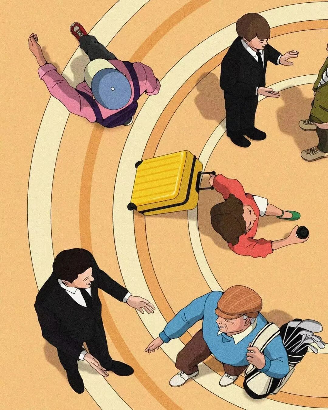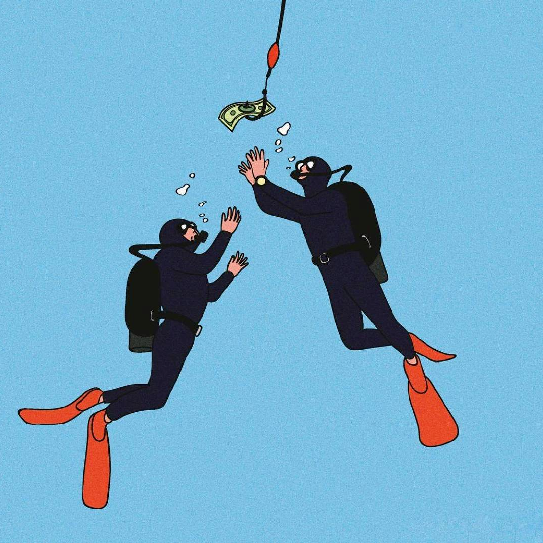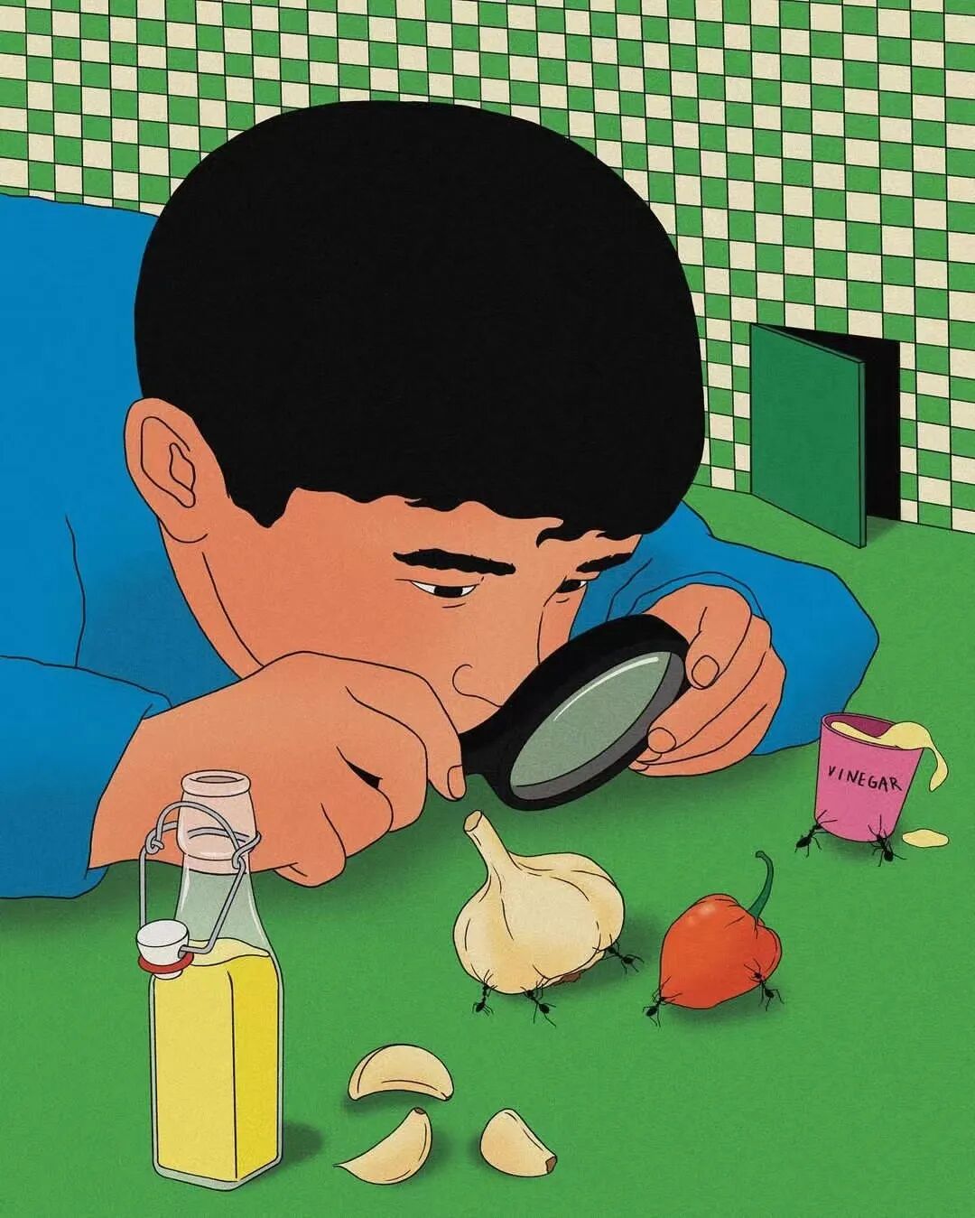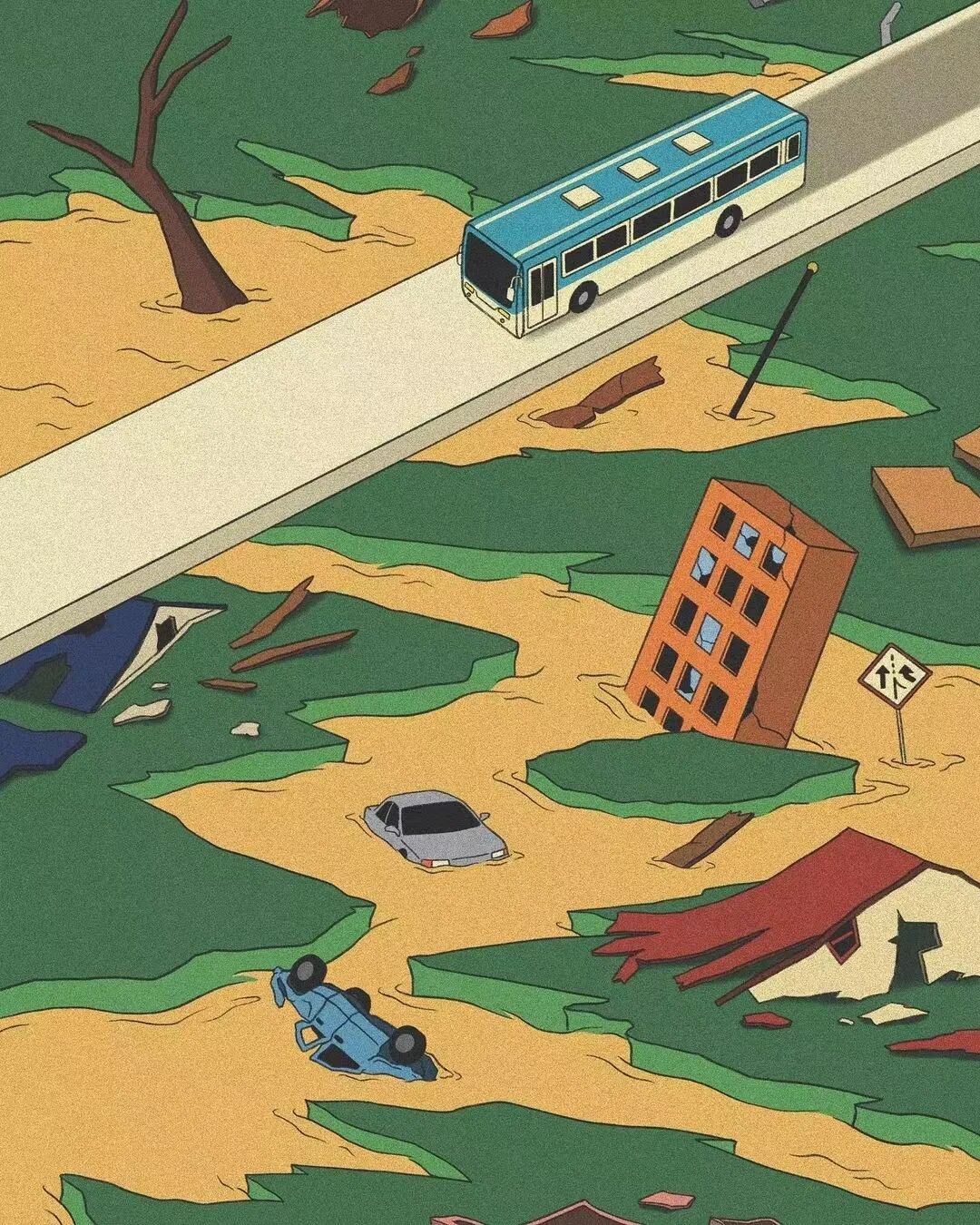 作品集2023-12-25 脑洞、讽刺、白日梦,全亚洲的社畜,都想跑到她的画里撒野 | 金城 近年来,无论是互联网还是现实,很多人都感受到了一股焦虑感。失业、内卷、内耗等状态令许多人疲惫。 什么时候能够从容一点,有趣一点? 学学韩国插画师Choi haeryung的画吧,用孩子气的天真,对抗无聊的一切。 看她的画,我们的第一印象是画面简单而宁静。 比如,她的《失踪》系列构建了一个田园诗般的环境。 女孩失踪了,她不在任何的学校与班级,也不在文件堆积如山的工位上,而是跑到了... 世外桃源。 她的背后,沙丘、躺椅、椰子树被分割到各处草地上,她与它们若即若离,但仍专心致志地看着什么。 这个世外桃源还来了其他的人。 两个穿着校服的女生手牵手站着,一个人盯着另一个人的侧脸,另一个人则看着远去的纸船,似乎可以感知到两个女孩之间暧昧不清的情感…… 一个男人,他可能逃离日常繁琐的工作,带了渔具在草地上钓鱼。 还有另外一个人,他把轮滑板当成小筏,高尔夫球棒当成船桨,抛下自己的汽车驶向远方。 在这些画中,我们感受到了梦幻式的宁静: 河水静静流淌,纸船慢慢地移,鸽子好像在等船再靠近点,扑腾下翅膀准备搭个便车。 她的画好像就是如此意识流,让人感觉宁静忧伤,难怪业界人士评价她的画用了白日梦这个词。 这种白日梦,她是从小做到大的。 上学时,她就把时间花在构建各种各样的角色上。 然后,她会迫不及待地与朋友们分享。 那是学生时代的白日梦,惬意而轻松,它们从脑海里产生,再从笔尖流泻出来,构成一幅幅如梦似幻的画面: 带着潜水镜,和群雁遨游在碧蓝天空中。 把美神维纳斯当成换装模特,看看哪件衣服更好看? 肚子痛的时候,笔下也妙趣横生:肠子里面好像有个小人在捣乱... “我通常从互联网上获得灵感。如今,互联网已成为日常生活的一部分”,白日梦的来源原来是浩瀚的互联网海洋。 有了这些原材料还不够,还需要一点奇思妙想式的加工。 她说:“网上的灵感与想象混合,然后我创造了一个新的形象。” 吃的是草,挤的是奶。 网络上的繁杂信息成为了她白日梦的黑色燃料,催动着这天真机器不断加工、产出斑斓的幻想,让她的画充满了童趣,宁静,但也仍有因原料不纯而产生的淡淡哀伤。 哀伤的根源是什么? 可能从她带有讽刺意味的画作中可以窥探一二。 她喜欢用鲜艳的色彩、熟悉的日常场景,直到它们变成一幅充盈着讽刺的图景。 美国国旗上的星星,实际上是棒球组合而成。 数字货币把银行隔离成一座孤岛。 把新冠肺炎用一招本垒打,打到别的地方去。 窄窄的高架桥,底下房屋倒塌,汽车沉没,像垃圾场,存活的人们也似公车在走独木桥,岌岌可危。 纷杂的世界里,成年人为了金钱,埋头社交、工作。 然而,在脚步匆忙的众人中,却有一个孩子扬起了头与自己对视。 和孩子的对视,让自己也变成了孩子,而用孩子的眼光看世界,世界也变得单纯而多彩。 童趣也成了对抗枯燥世界的法宝。 比如,孩子们可以拿起放大镜观察周遭,把时间“浪费”在常人看来的微不足道中。 大人们的地中海是因为年龄的摧残,孩子能爬到头顶像插秧似的拯救一番。 读书太困了,就躺在书上睡大觉,让梦里的小人替自己解决。 文件太多,堆成一座高山,就干脆躺在上面睡觉吧。 脑海里也有分岔路,小孩子也有他的迷茫,该走向何方? 在彩色的世界里,以梦为马。 把脑子摘掉,做一场心灵的瑜伽。 在孩子的世界中,没有什么是不可能的。 肯德基爷爷能给麦当劳作宣传,咬了一口番茄,其实是苹果;不顾及身材,轻松实现薯片自由..... “我总是试图看到一个年轻孩子看到的每一个图像,尽管我不是一个小孩子了,但我认为我仍然有可能从孩子的视角出发。”她说。 她与自己有一套和解的方式,那就是用这小小的天真、无伤大雅的无赖,去对抗现实里大大的无奈。 有人说,看她的插画是一次宁静祥和的正念之旅,在精神紧张,寻求心灵安慰的时候,甚至有治疗的作用。 她的画,会让人想起小时候飞行的梦,梦到基调总是欢乐。 而长大后,成年人忙于都照着别人的模板生活——鸡娃,养娃,996、北漂广漂沪漂,中年失业...... 插画师所处的韩国也是如此。 前不久,韩国有300多万成年人啃老,20岁以上年轻人的社会活动参与率也创造历史新低。不断加剧的老龄化,也让韩国不堪重负。 时代的重压,让人闯不过气来。 2020年疫情距今即将第三个年头,Choi haeryung把人们居家隔离的百无聊赖,烦闷,用插画的形式表达了出来。 红色门内,孩子的一句吐槽,是当下年轻人真实心声。 也许是过分的迷茫,让插画师Choi开始创作了失踪这一系列画作,她急需在这高压的节奏下安静下来。 “我真的很喜欢这个系列。” Choi说,“最近,我觉得少了点什么。我不知道为什么,我真的很困惑了一段时间。” 所以,她用这些充满童趣和脑洞的插画,来让心里安静一会。 “这里真的很安静。河流流淌缓慢,渔民们只是等待鱼。这就是我脑海里所需要的一切。” 在令人焦虑的当下,她逐渐选择做个面包,做个热狗,总之就是要随心随意,做个“时代的巨婴”。 她想,既然天真与世俗无法共存,那就让复杂和矛盾来得更尖锐些吧。 但是毕竟这是插画家,于我们普通人而言呢? 在纷扰复杂的当下,保持天真也是一件难得的事情。但是问题不大,生活无趣,尽情戏谑着,终有一天你会像她一样,找到天真与世俗之间的微