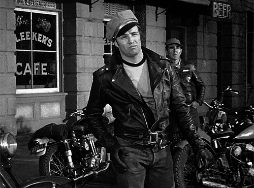 当然,真正让皮衣迎来蜕变,开始与摩托车文化融为了一体,在更多人的面前出现,还要得益于在1953年之间,著名的影星马龙·白兰度,于电影《THE WILD ONE》之中的精彩表现。虽然他在影片中的角色,有点不太不受人待见,且总是喜欢穿着一件斜拉皮衣,游走于街头巷尾之间;但恰恰就是这样的一部影片,却让皮衣,开始流行于当时的美国社会之间,几乎是每个摩托车骑士,都要想方设法,去弄上那么一件。