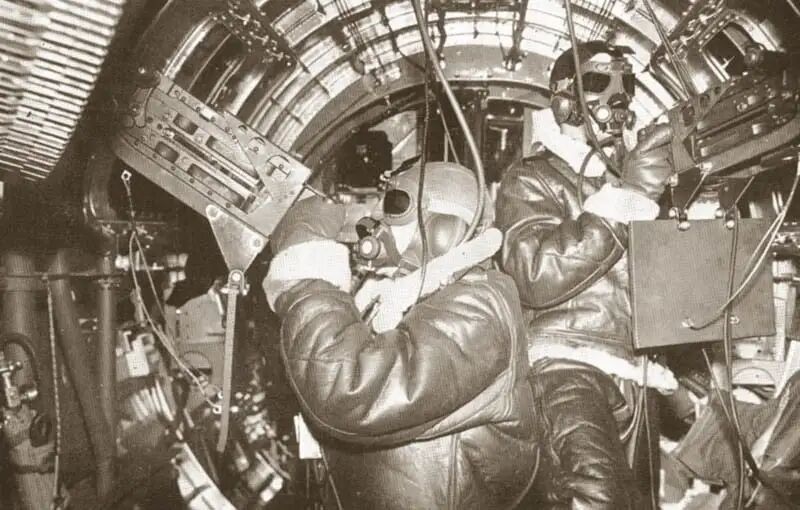 只是不同于A1,甚至是A2飞行夹克的防风与轻便,都脱胎自英国皇家空军“IRVIN JACKET”的B3飞行夹克,虽然看似十分的臃肿与不便,但却广泛的流行于,当时的美军轰炸机机组成员们之间。只因在当时轰炸机的机舱里面,由于作战所用的M-2式机枪,需要预留出一定的射击空间,因此机舱的密封并不全面;而这也就导致了在万米高空的平流层面,机舱内动辄零下30-40度的低温,让机组成员们的作战,十分的艰难与不便。
