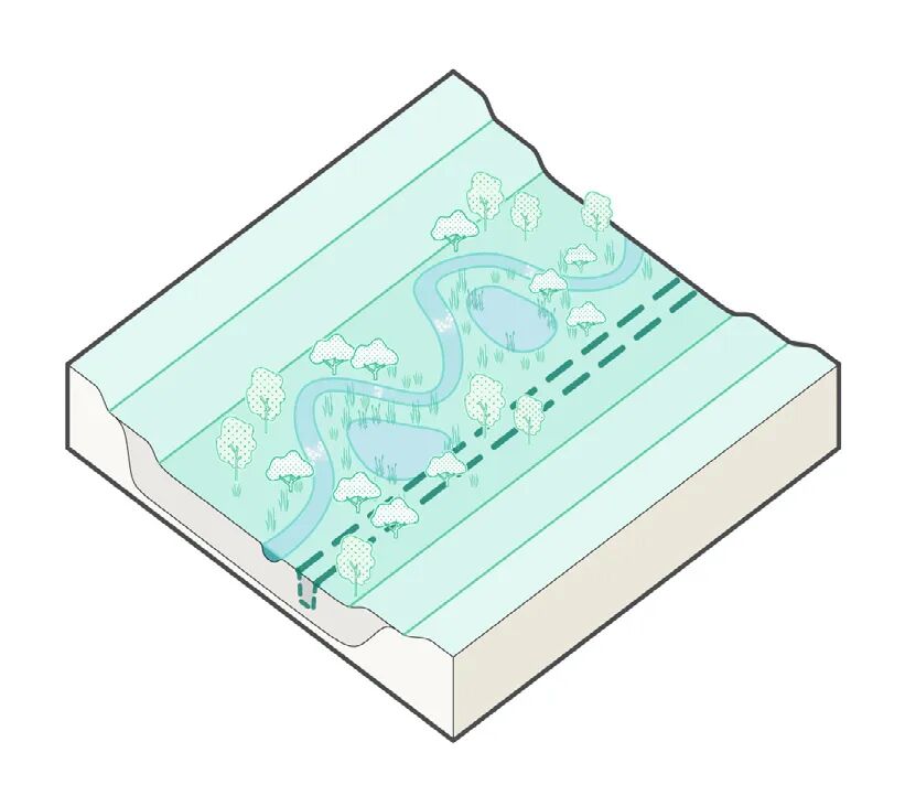 Levee setback is the process of relocating a levee further back in the floodplain to provide extra space for the river to flood. Levee setback provides the river with more floodplain area to interact with and can result in lower flood elevation. The new space for the river allows new ecological and recreational activities, and provides a greater diversity of floodplain habitats.