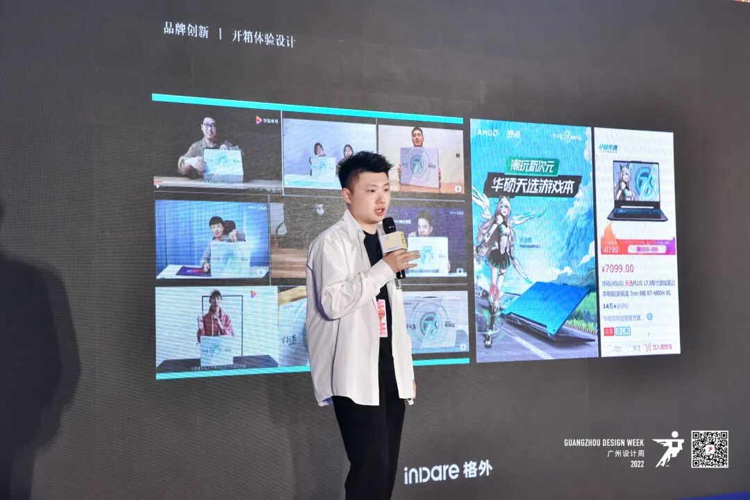 对于一个为电器行业做产品设计的企业跨赛道做空间设计,高森先生从传统电脑品牌华硕的品牌升级案例进行展开说明,讲述了其团队为该品牌打造了产品定位设计、营销策略设计、IP形象设计、产品开箱体验设计、线下旗舰店设计等一系列的配套设计;在秉承着高品质设计应具备高质量落地的考量下,高森先生及其团队在项目落地时充分实现了动态新媒体视觉和基于消费者感官体验的设计思想,为自身团队补充空间设计业务板块,帮助品牌服务闭环做成了重大突破。