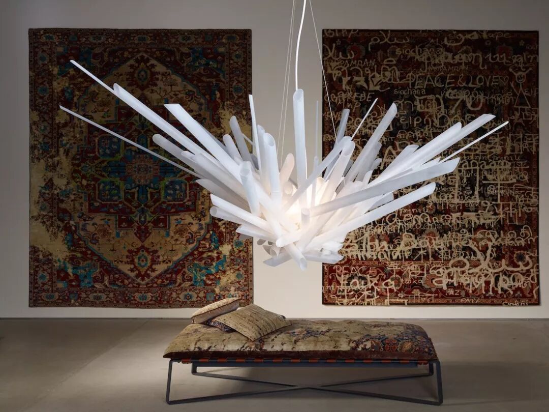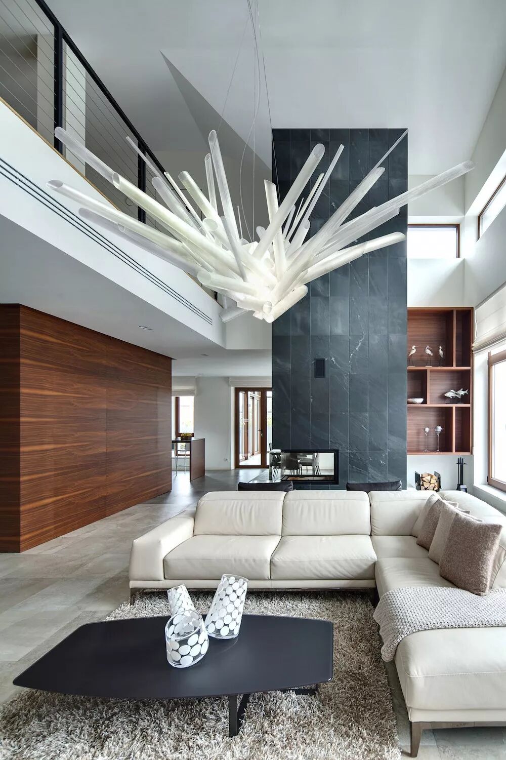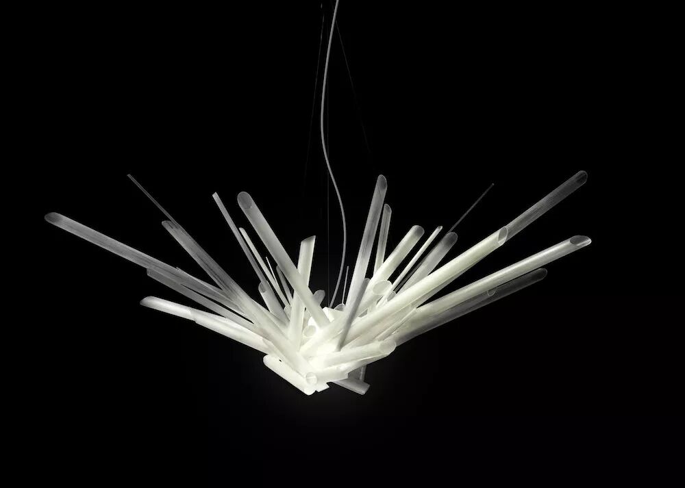 吊灯款灯管的长短对比十分明显,让人感觉到巨大的张力,半透明的外观又不会让整体显得十分承重。