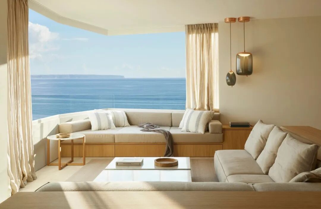 住宅与深蓝色大海的紧密联系是这样的,它产生了一种不是在陆地上,而是在地中海游轮上的感觉。
