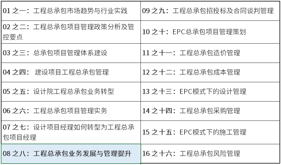 通过分享不同类型企业总承包管理的实践经验,了解企业在发展总承包业务中将面临的挑战,提前做好应对措施;了解不同类型企业在工程总承包业务发展的不同阶段的重点任务;掌握工程总承包体系建设的框架、内容和方法;学习借鉴优秀企业的领先实践。