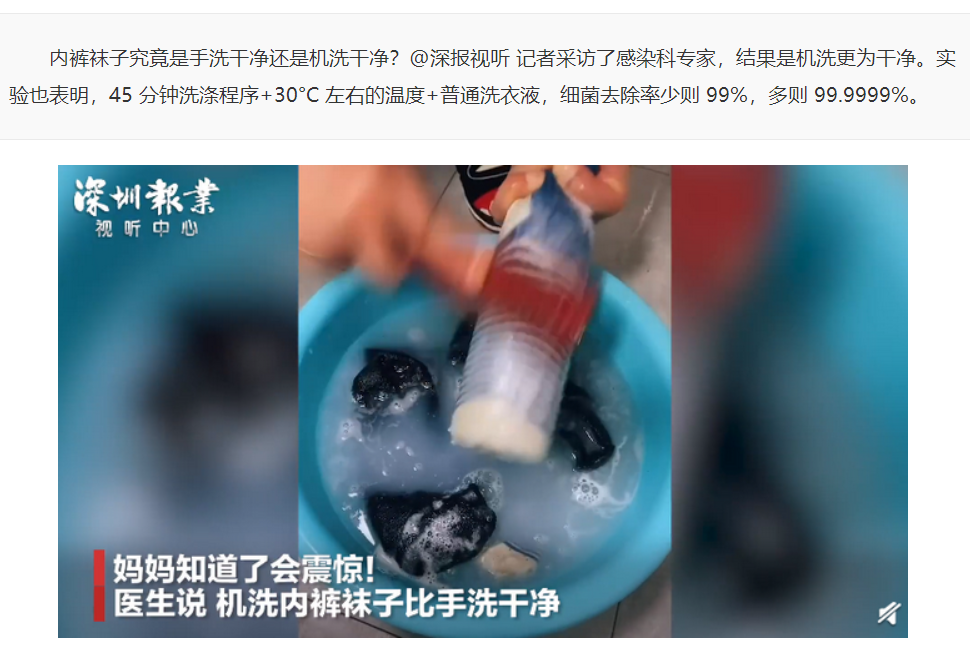 有新闻记者通过实验+采访感染科专家结果都表明:机洗远比手洗干净、且除菌效果好!
