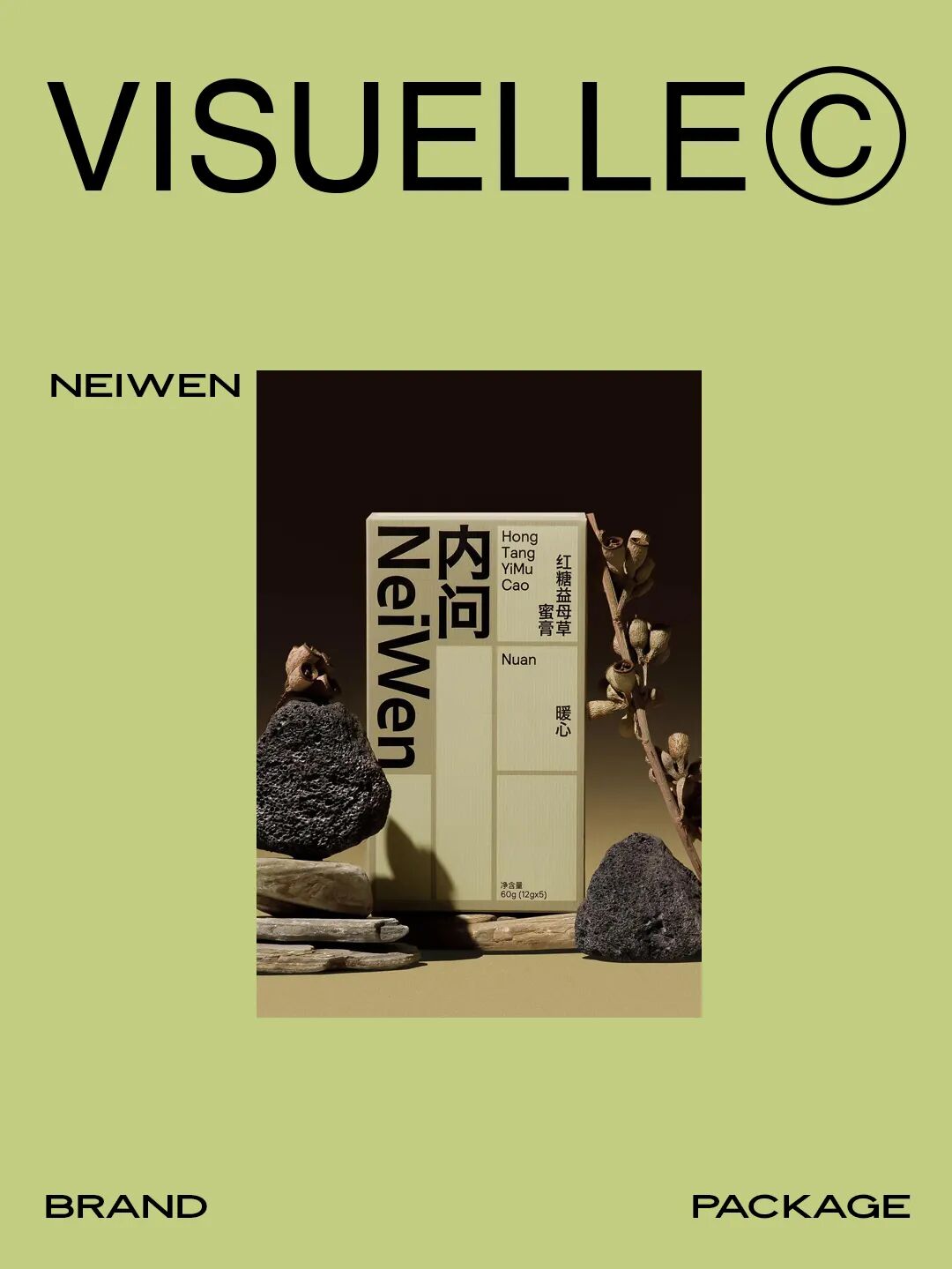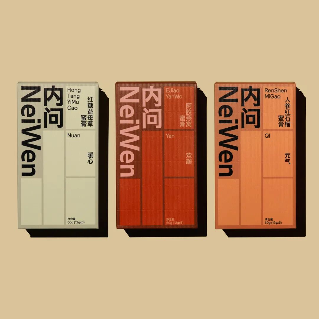 NeiWen 整个产品系列包装由国内新晋工作室Workbyworks操刀设计,以当代更年轻化的视觉语境重塑传统品牌的样貌,开启中国传统养身品牌全新赛道。