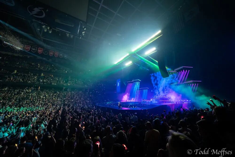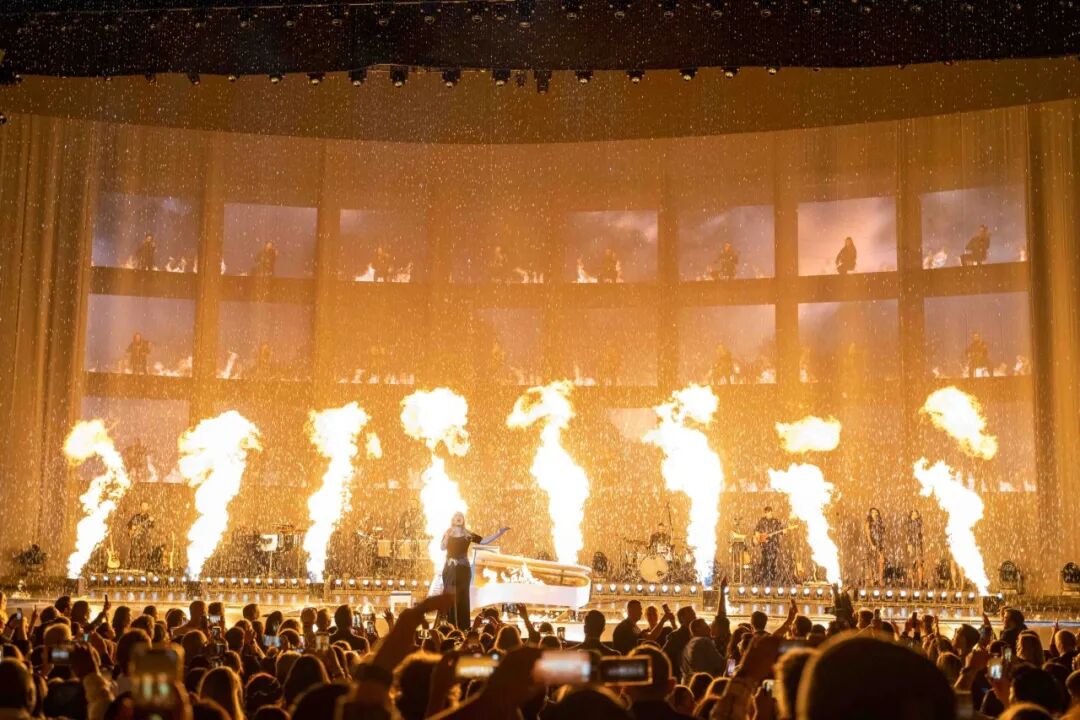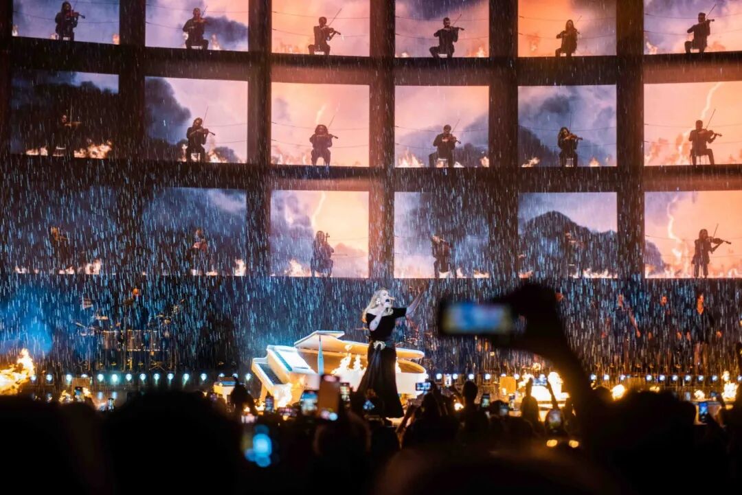 巡演的视觉效果简直令人惊叹,亮的灯光在体育馆上翩翩起舞,彩虹般的激光洒在人群中。