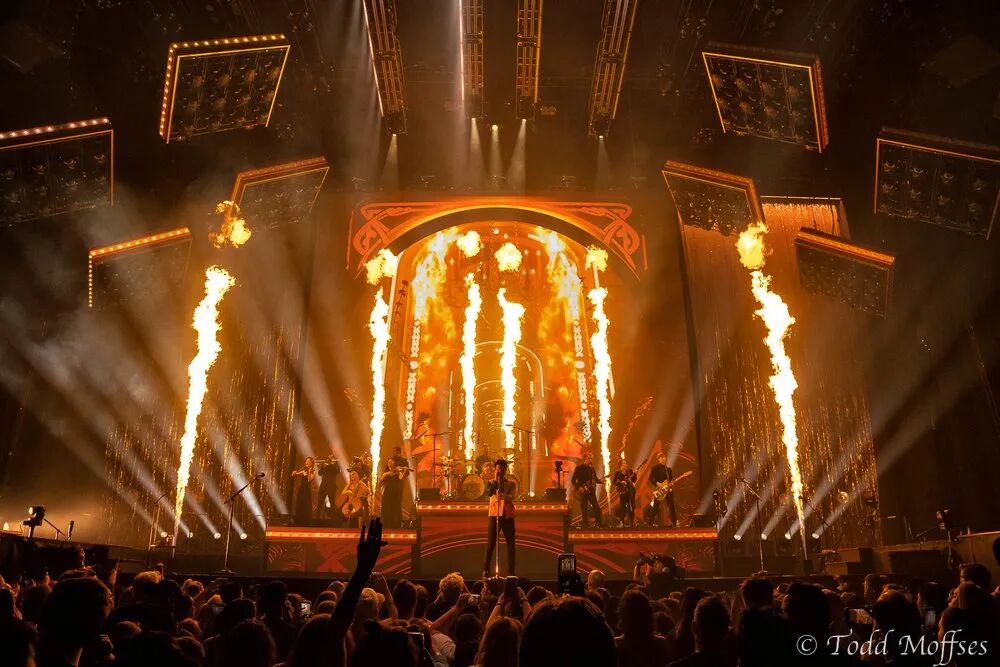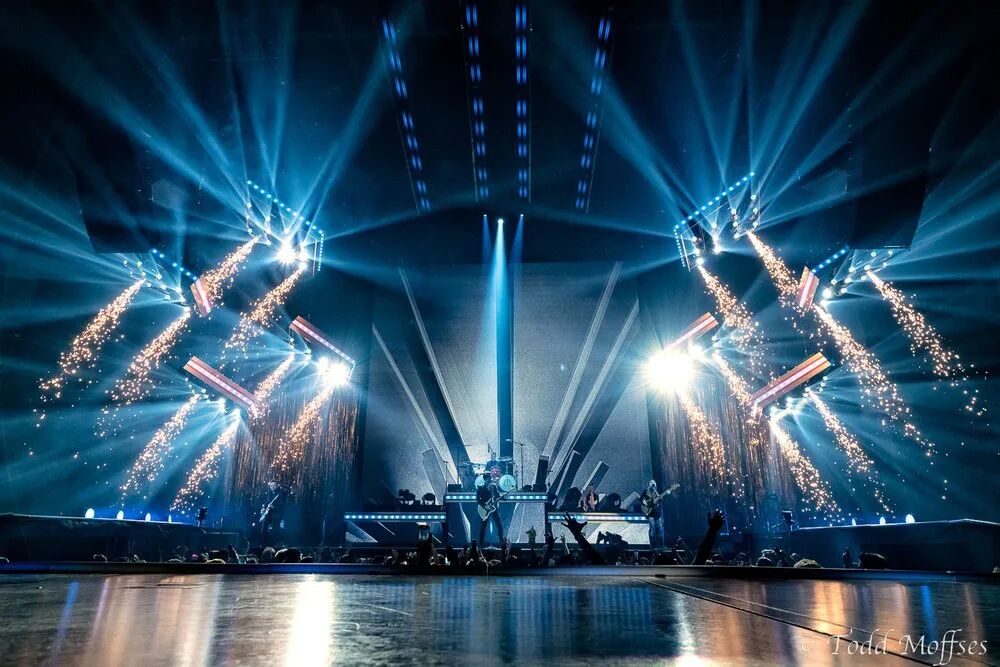 整个巡演没有视频内容灯光需要在演出的每一刻都处于最前沿。在设计装备时,灯光设计必须确保以照明为主创建背景,并照亮浓烟和阴霾、风景元素,当然还有乐队本身。